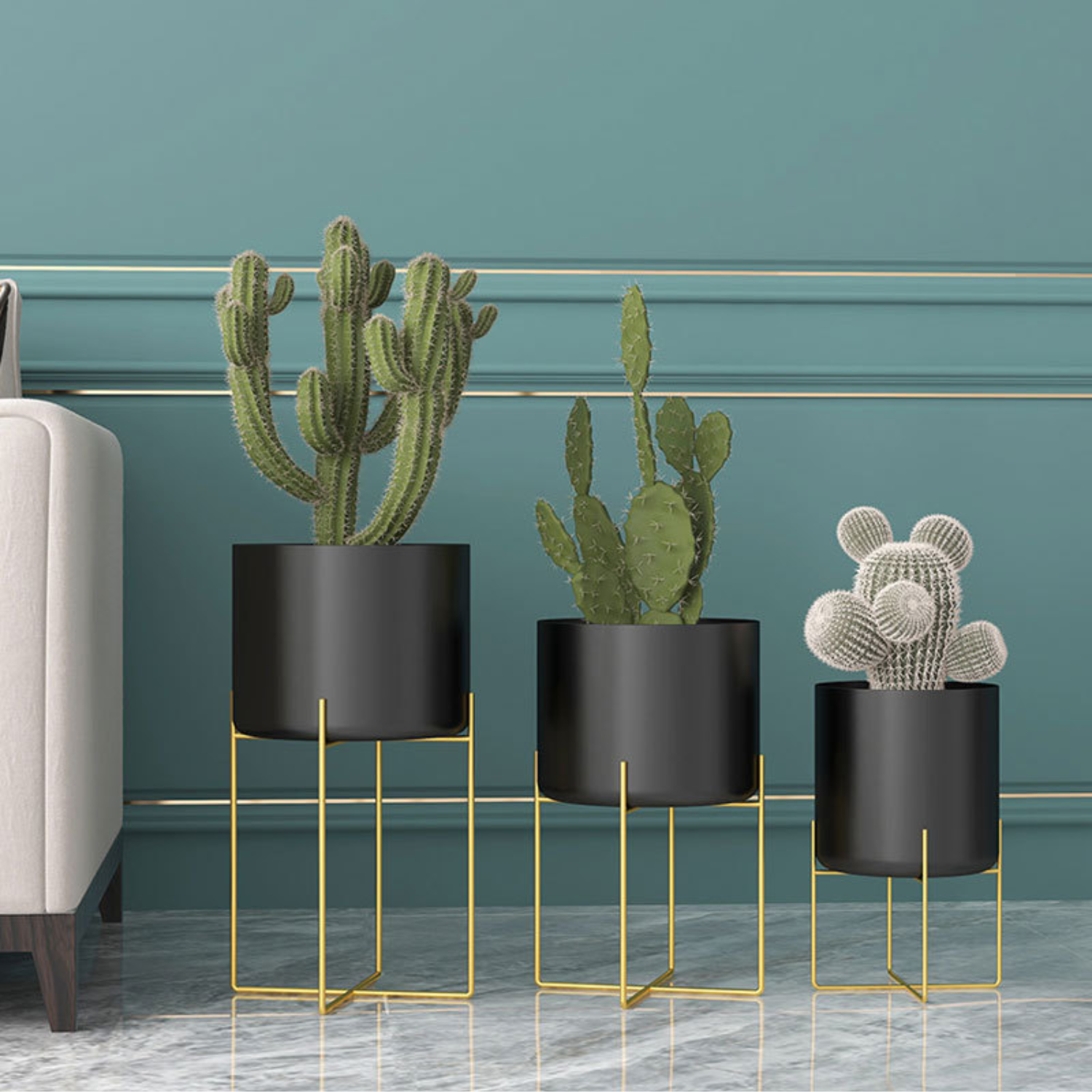 Este conjunto de maceteros es perfecto para los amantes de las plantas y el diseño moderno. Con un acabado negro mate, cada macetero aporta un toque contemporáneo a tus interiores, destacando la belleza natural de tus plantas favoritas. Además, su diseño minimalista los hace ideales para cualquier espacio, desde salones hasta oficinas.