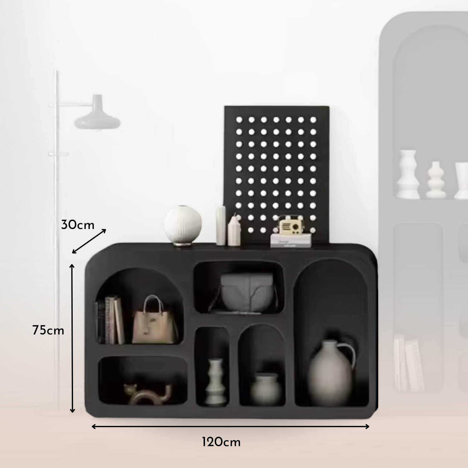 Dale un toque moderno y funcional a tu hogar con el Organizador Geométrico Bogen Negro Mediano, un elegante aparador diseñado para brindar almacenaje práctico sin renunciar al estilo. Con 6 compartimentos distribuidos en un diseño geométrico equilibrado, este mueble es perfecto para organizar tus objetos decorativos, libros, vajilla ligera o accesorios favoritos, manteniéndolos siempre a la vista y en perfecto orden.
