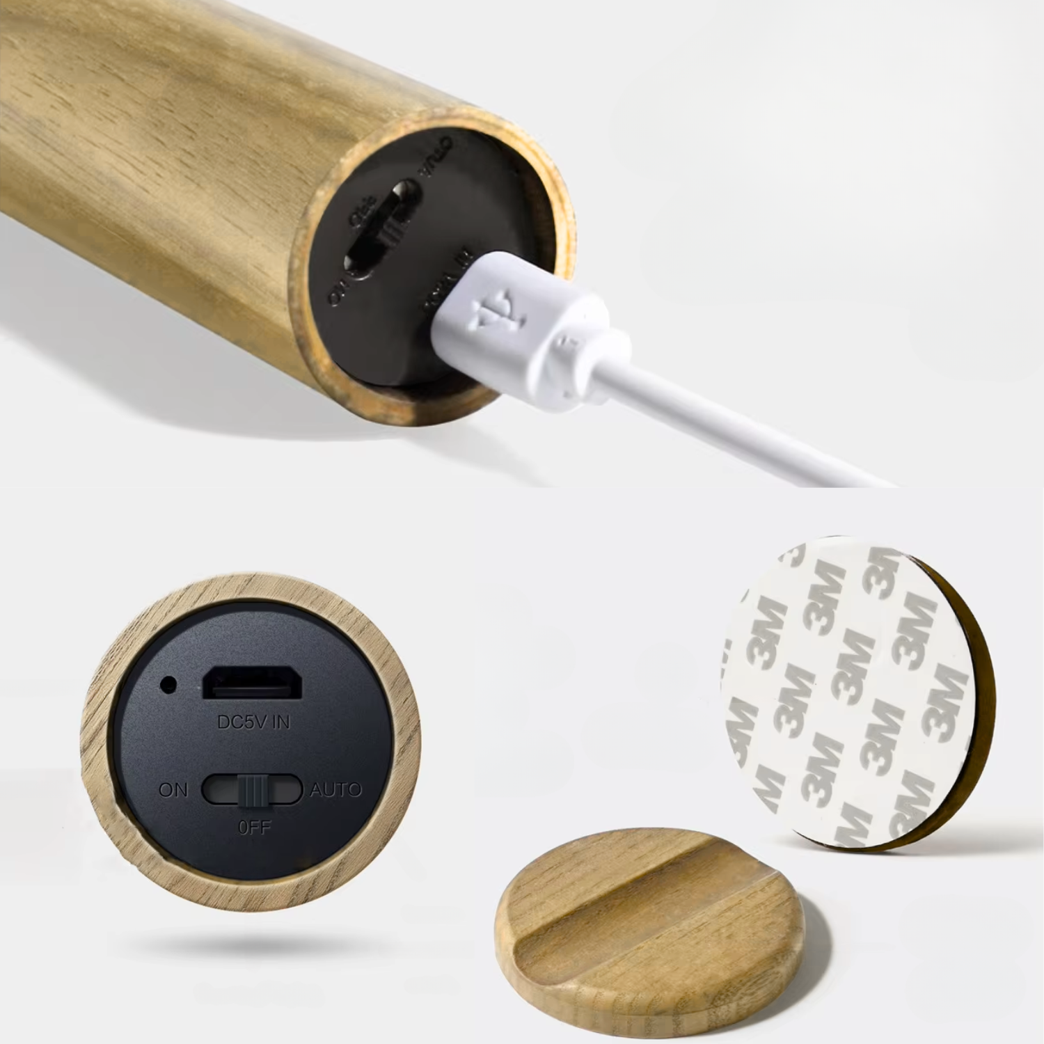 Transforma tu hogar u oficina con la Luz Nocturna Portátil con Sensor Cerezo. Su diseño elegante combina madera y vidrio esmerilado, añadiendo un toque sofisticado a cualquier espacio. Ideal para dormitorios, salones y oficinas, esta lámpara ofrece una luz suave y relajante gracias a sus 4 LEDs de colores cálidos y luz blanca cálida. Equipado con un sensor de movimiento y tecnología LED de bajo consumo, se enciende automáticamente y funciona hasta 8 horas tras 2 horas de carga. Su diseño imantado permite usarla de forma portátil, empotrada o de pie. ¡Agrega estilo y confort a tu espacio!