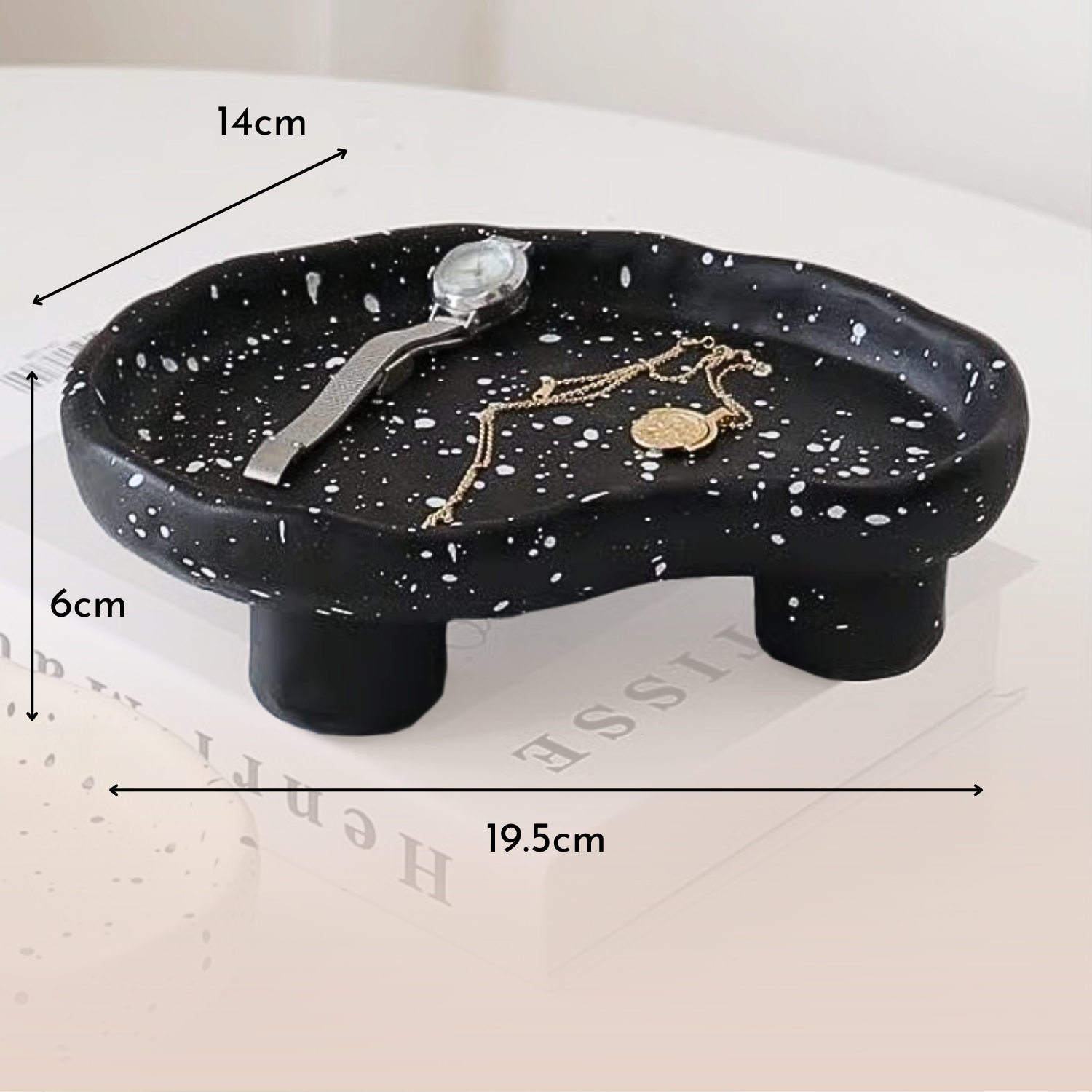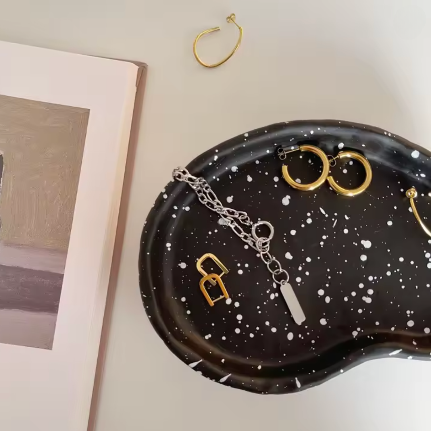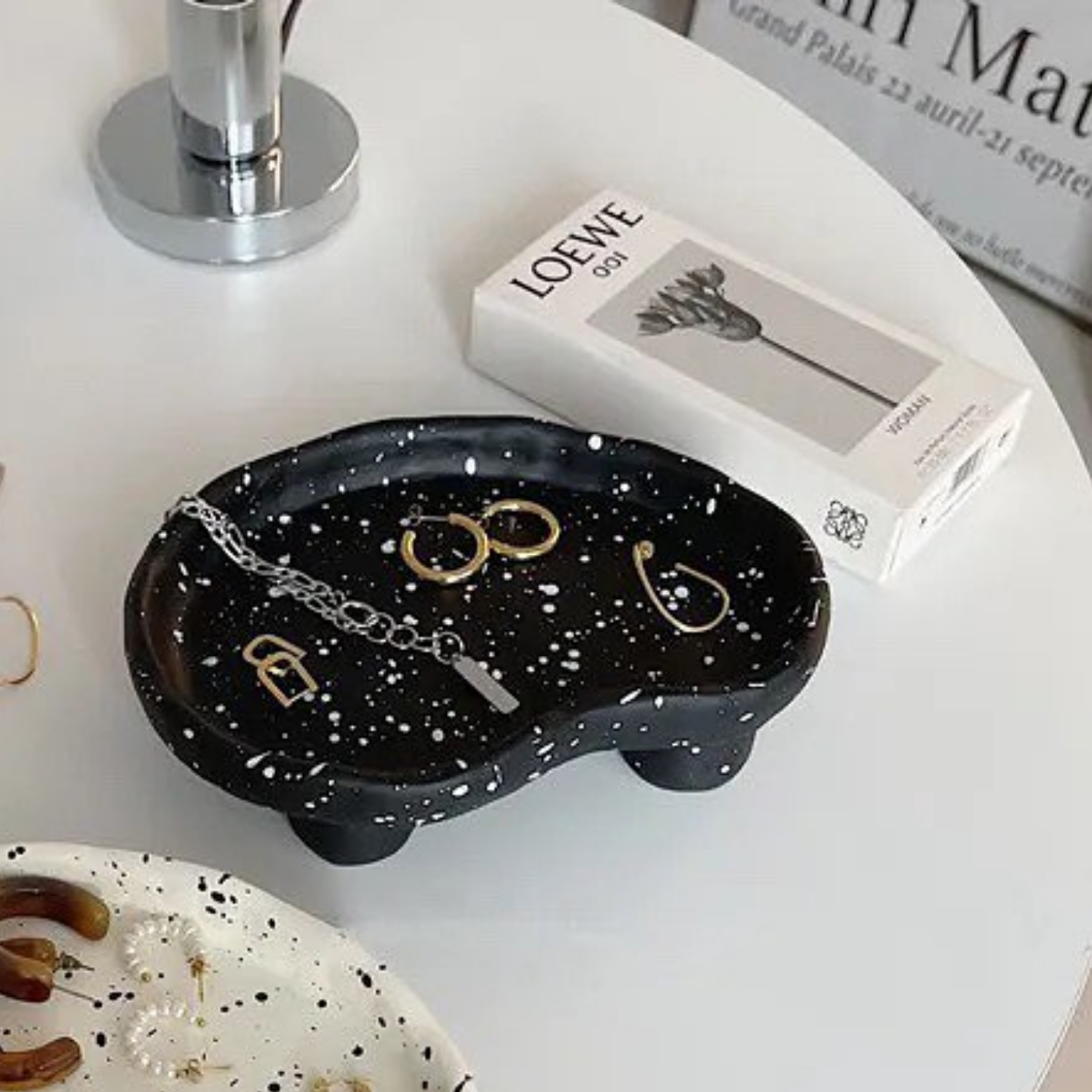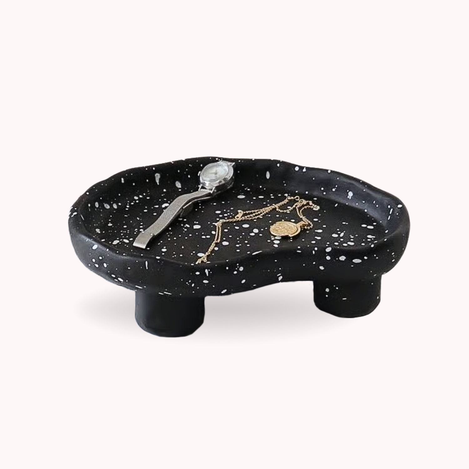 La Bandeja Cerámica Pepper Terrazo Negro es una pieza decorativa diseñada para transformar y elevar cualquier rincón del hogar. Su forma irregular con patitas de alzado aporta un estilo moderno y distintivo, ideal para quienes buscan objetos funcionales con carácter artístico. Su acabado en tinta salpicada tipo terrazo ofrece un look elegante y contemporáneo, creando un atractivo visual que combina fácilmente con decoraciones nórdicas, minimalistas o modernas.