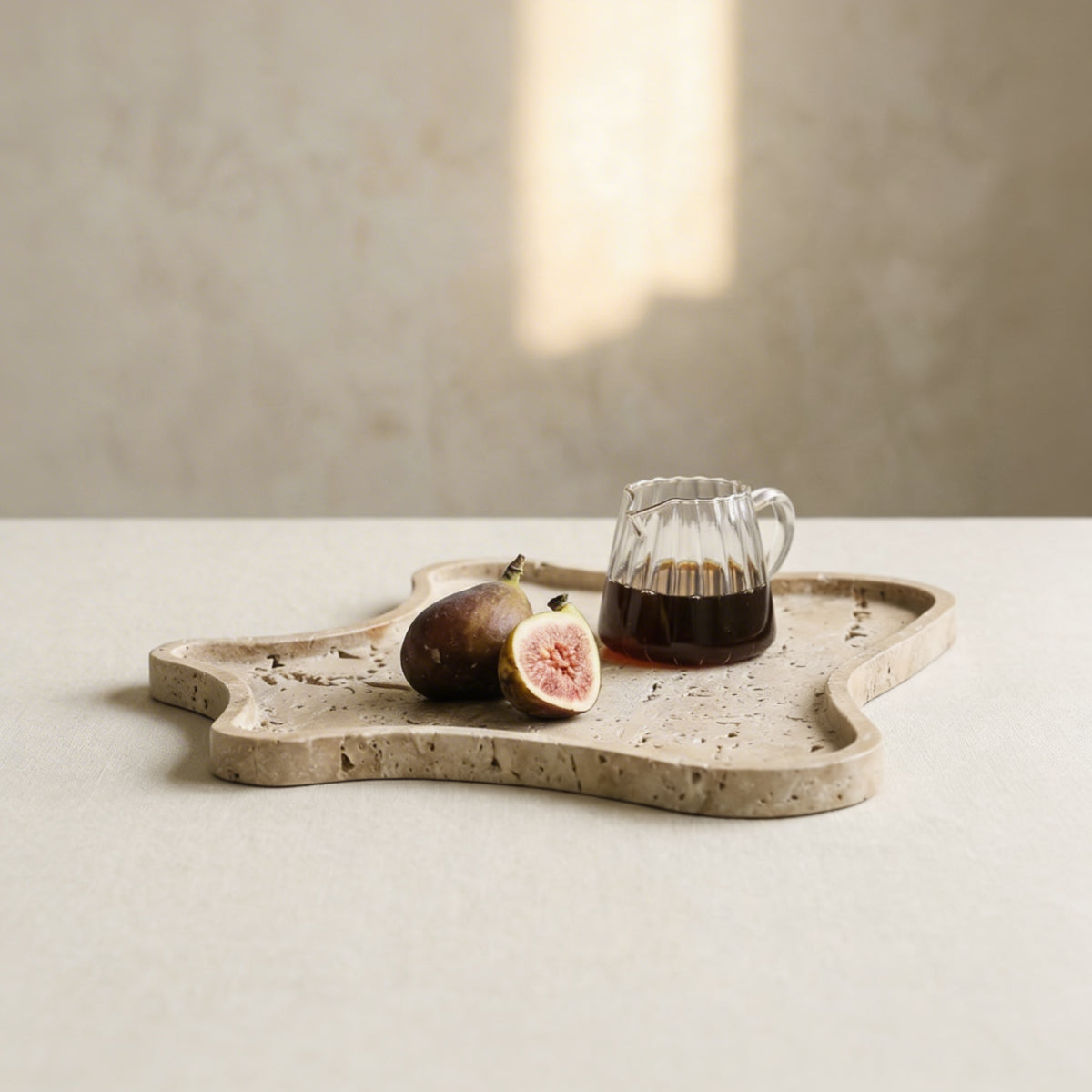 Eleva la presentación de tu mesa y la decoración de tu hogar con la bandeja de piedra irregular rústica natural en tono ocre, una pieza decorativa que combina elegancia, autenticidad y funcionalidad.