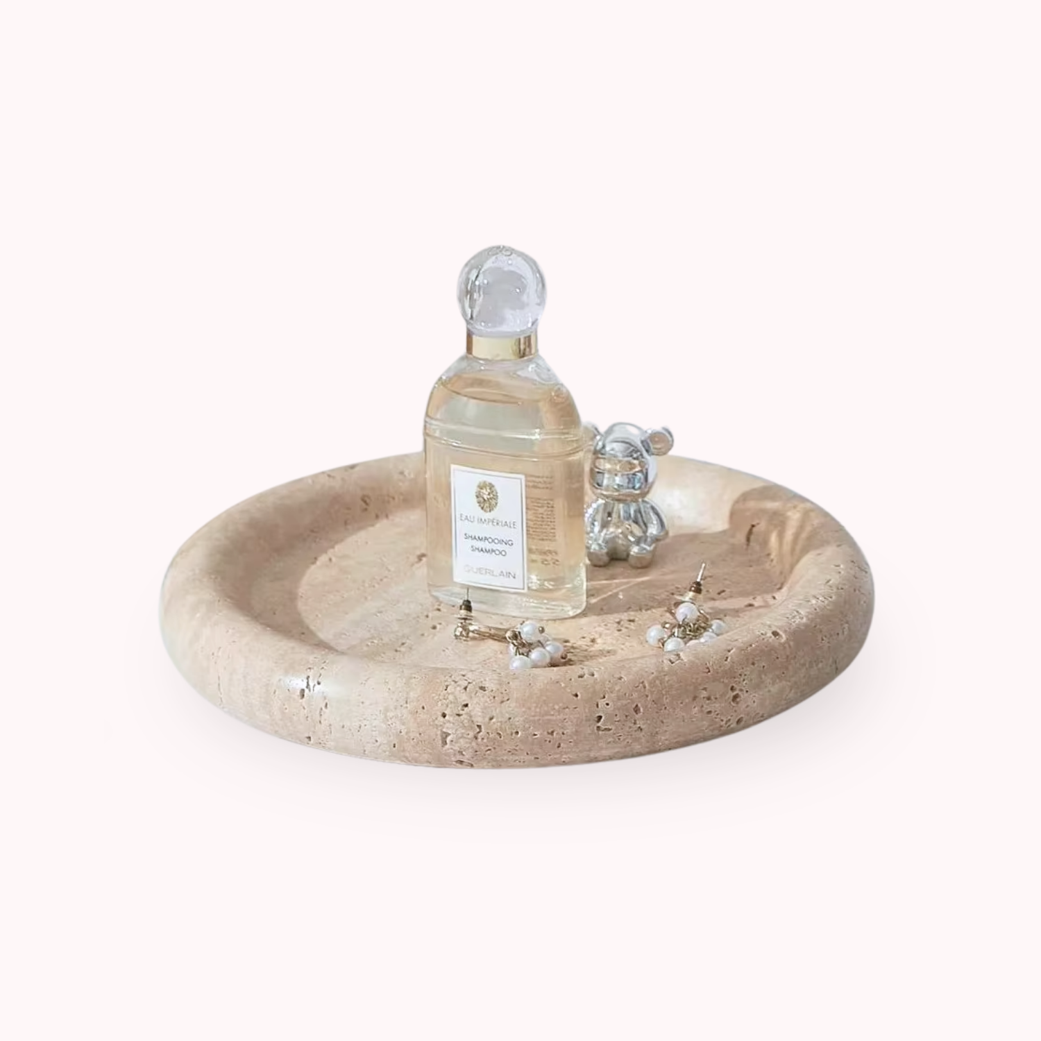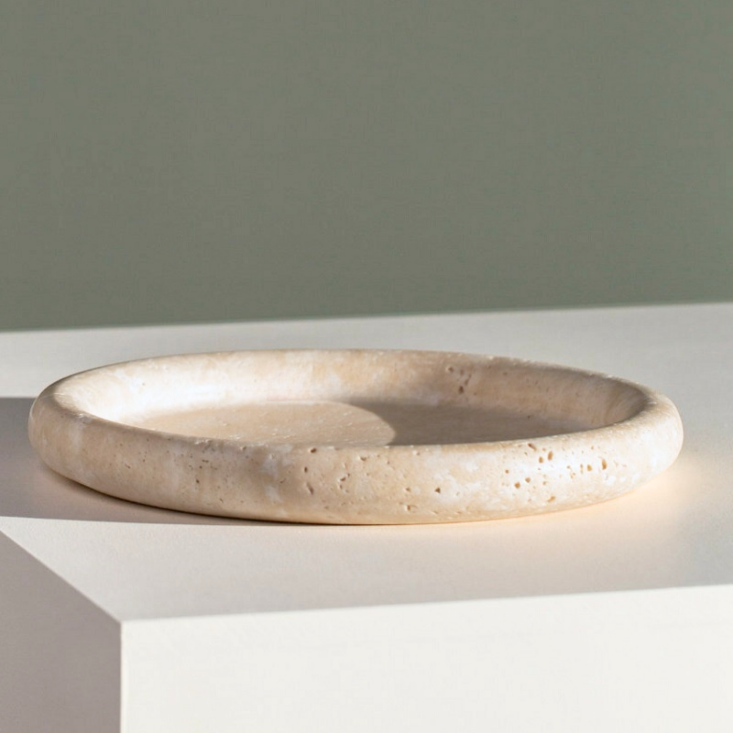 La Bandeja de Piedra Ámbar Travertino es una pieza decorativa que aporta textura, naturalidad y un toque moderno a cualquier ambiente.