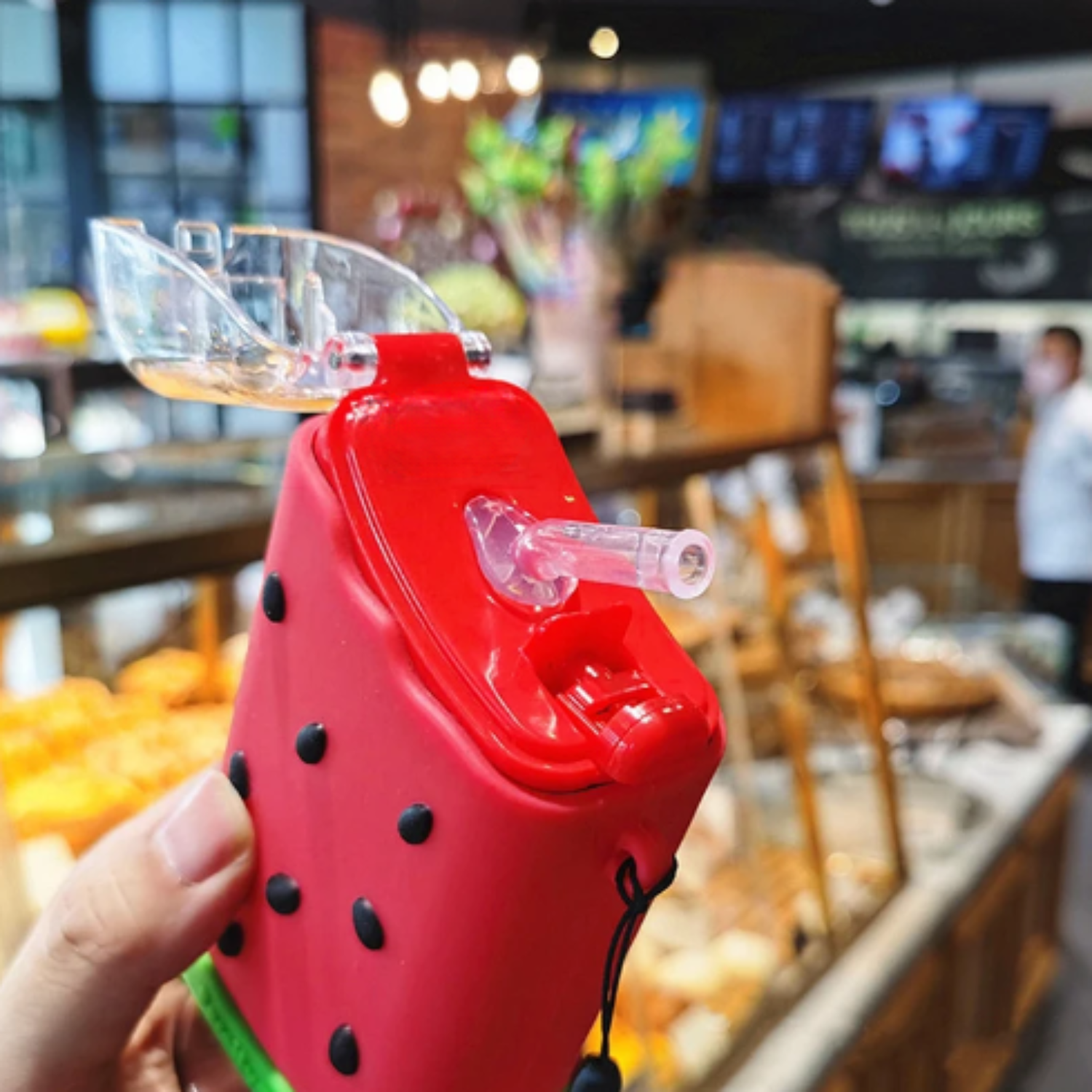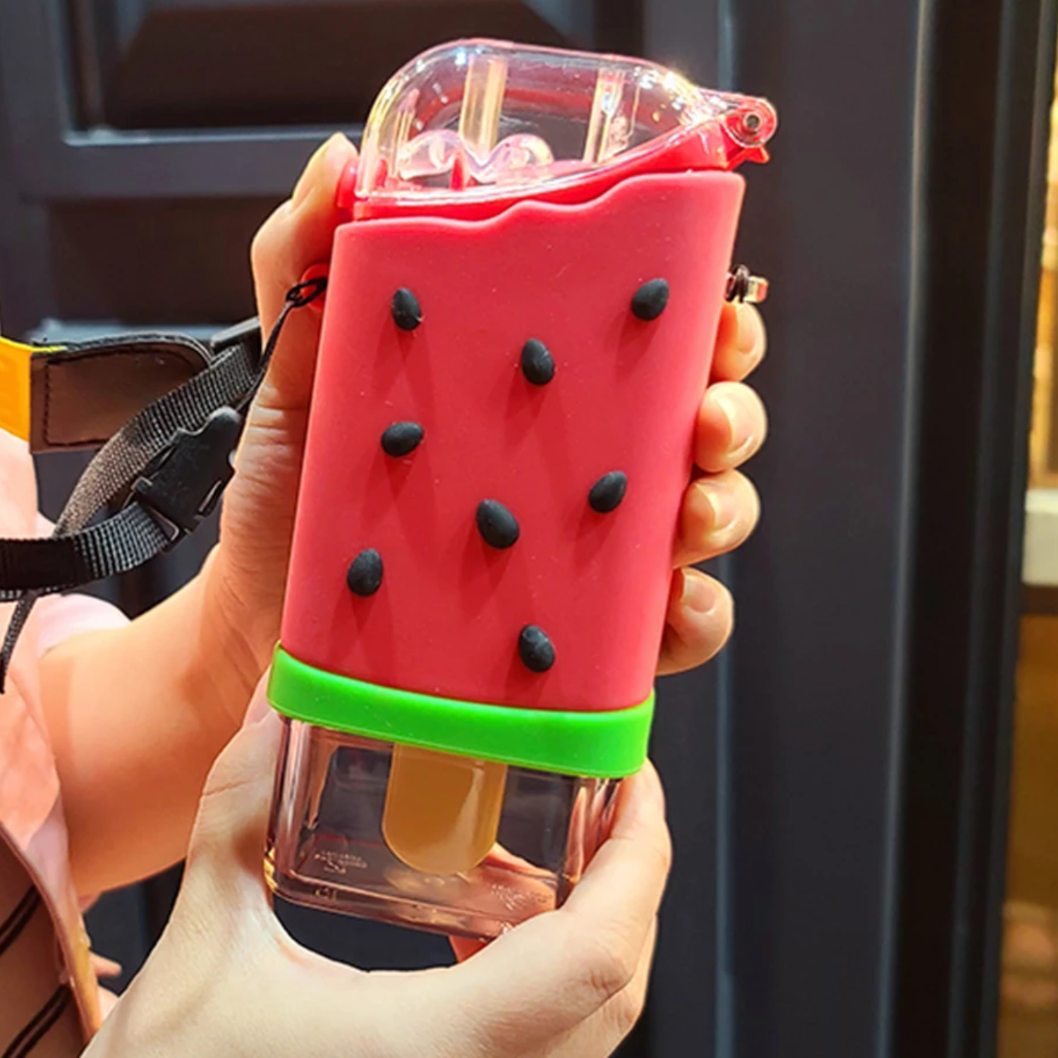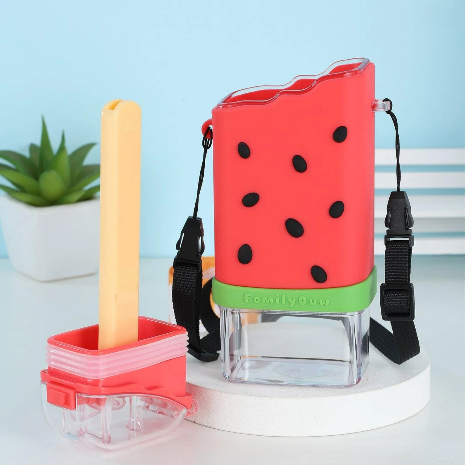 Esta Botella de Agua en Forma de Paletas de Helado Sandia es una forma fresca y única de llevar tu hidratación a otro nivel. Diseñada con el encanto de una paleta de helado, esta botella no solo te mantendrá refrescado, sino que también añadirá un toque de diversión y originalidad a tus momentos de sed. ¡Hidratarse nunca había sido tan delicioso! Fabricada en materiales resistentes y seguros para el uso alimentario diario. Cuenta con cierre hermético, evitando derrames. Incluye bombilla de silicona y correa de traslado para llevar al colegio, el trabajo o de viaje. Puedes personalizar colocando el nombre en su tarjetero identificador. Un regalo perfecto!