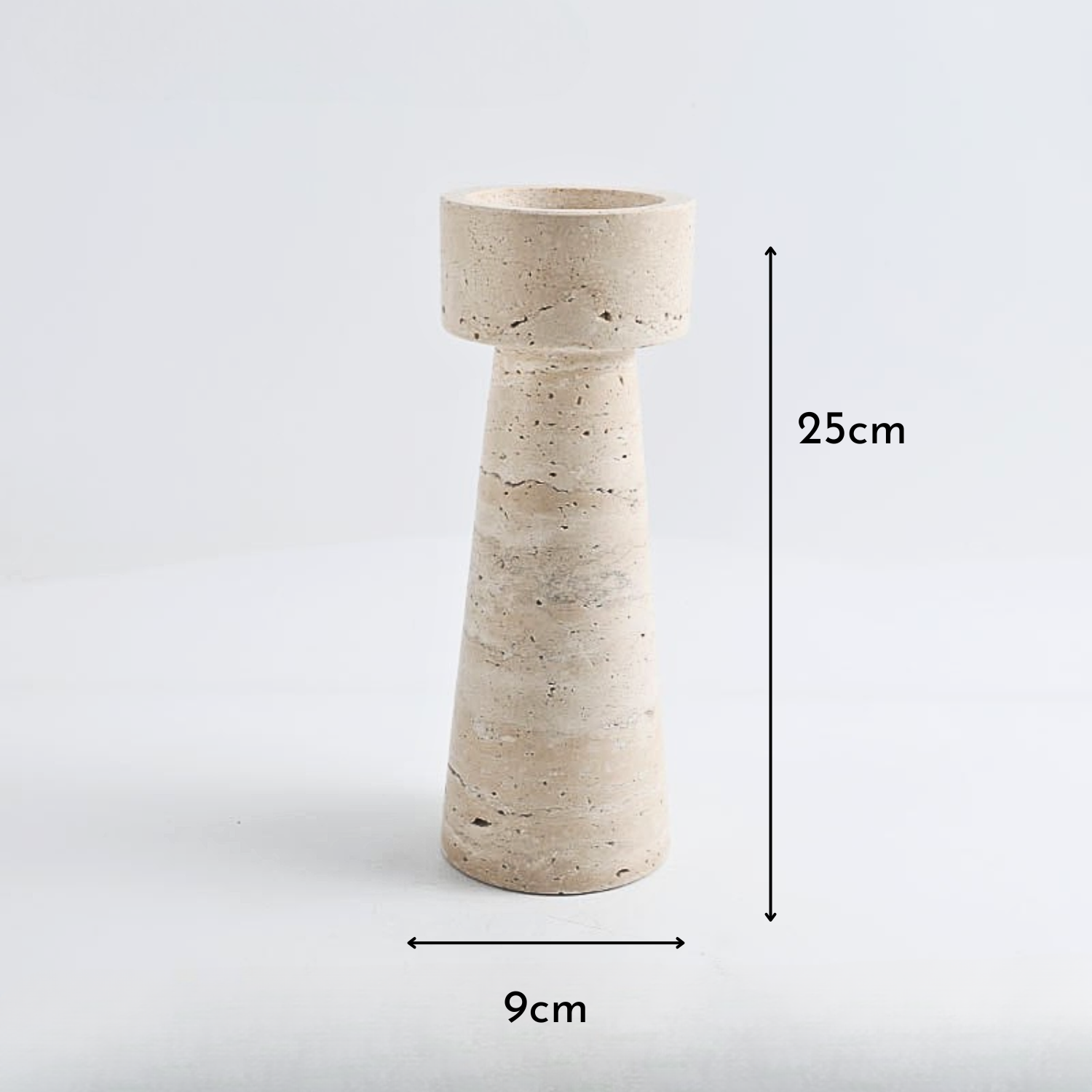 Dale un toque de lujo natural y diseño exclusivo a tu hogar con este candelabro de mármol travertino. ¡Haz tu pedido ahora y transforma tus espacios con calidez, carácter y estilo