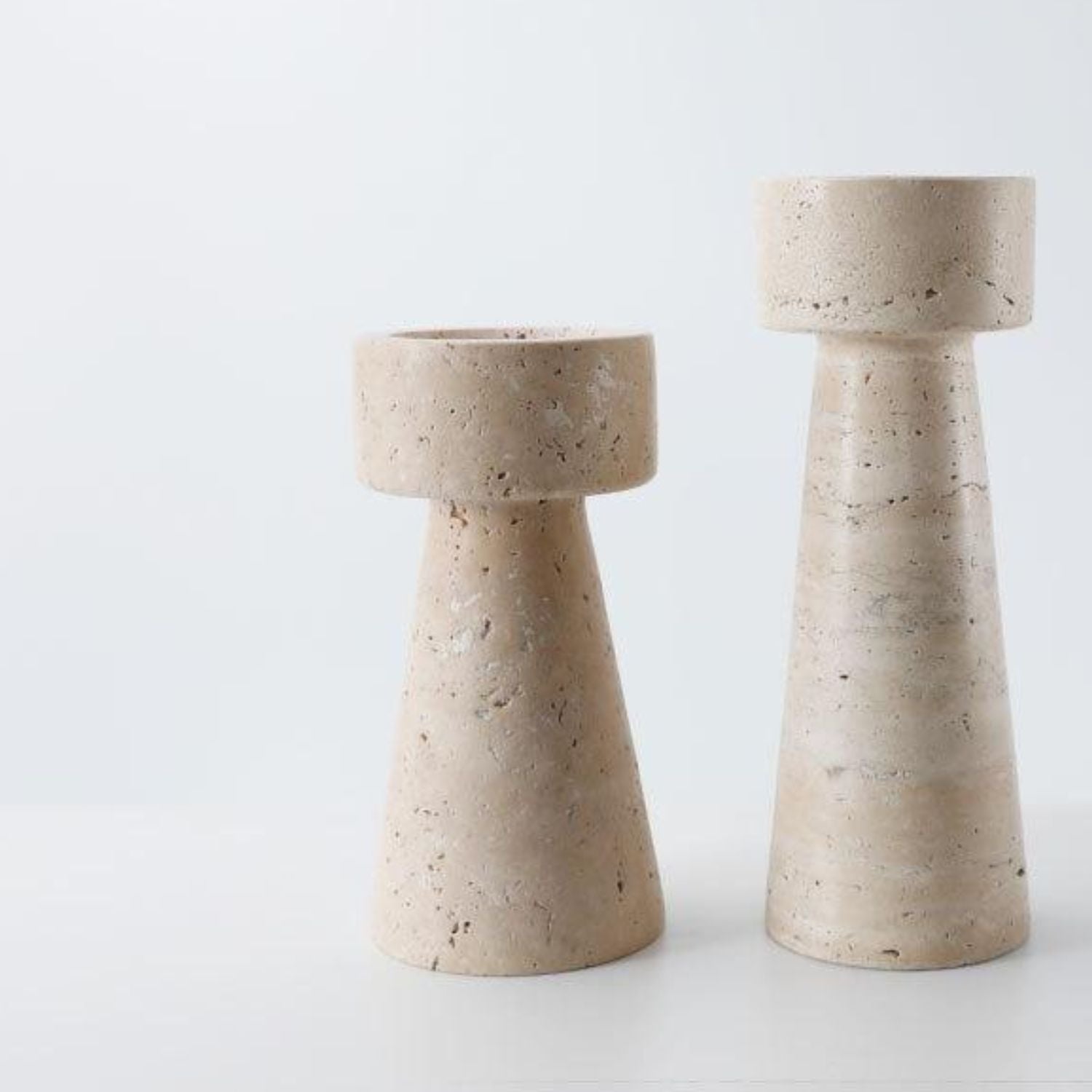 Candelabro Portavelas Mármol Travertino Torre Pequeño