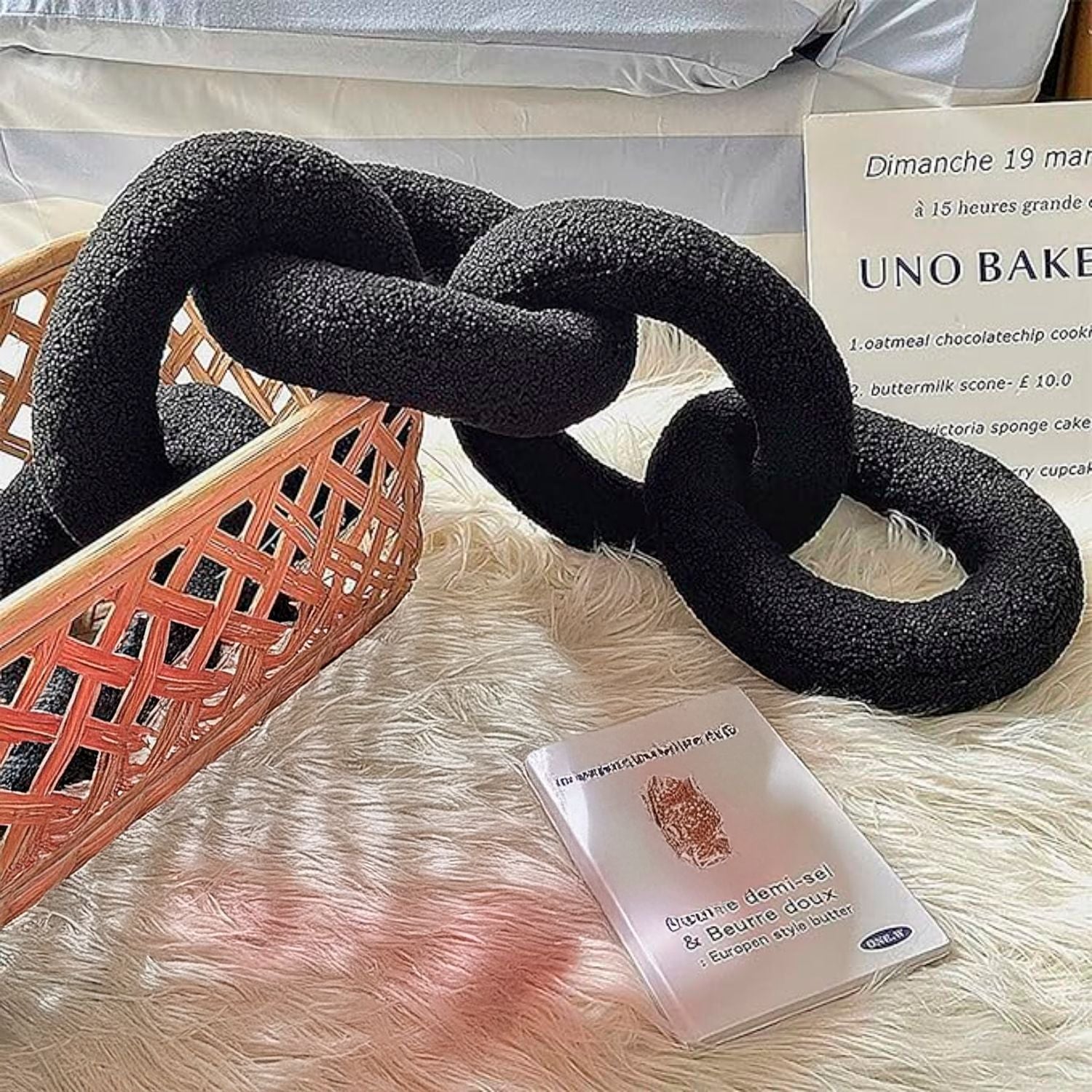 Dale un toque moderno y sofisticado a tus espacios con este Cojín de Eslabones Nordic Noir en forma de cadena color negro. Su diseño único combina minimalismo y elegancia, convirtiéndolo en una pieza decorativa ideal para tu living, sofá o dormitorio. Fabricado con materiales suaves y de alta calidad, este cojín no solo aporta confort, sino también una textura visual interesante que realza cualquier ambiente.