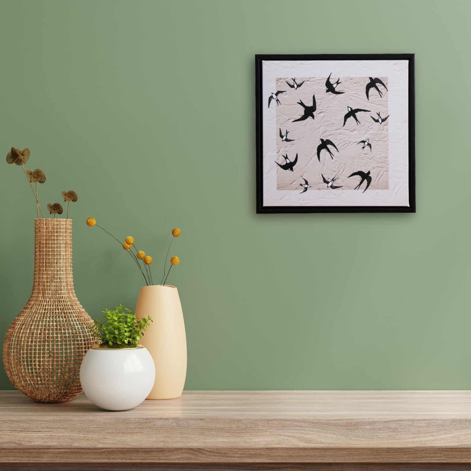 Dale vida y armonía a tus espacios con este Cuadro de Golondrinas al Vuelo, una pieza artística que simboliza libertad, esperanza y renovación. Su diseño delicado y lleno de movimiento aporta un toque de naturaleza y serenidad a cualquier ambiente, ya sea tu sala, dormitorio u oficina. Elaborado con materiales de alta calidad, combina colores suaves y detalles precisos que realzan la belleza de las golondrinas en pleno vuelo. Perfecto para quienes buscan un cuadro moderno y minimalista, ideal para complementar decoraciones de estilo nórdico, natural o contemporáneo.