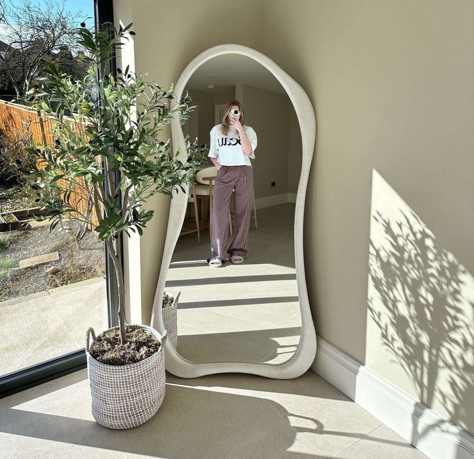 Perfecto para quienes buscan una pieza de decoración que sea a la vez funcional y una obra de arte. Su forma orgánica y materiales nobles convierten este espejo en el centro de atención de cualquier habitación.