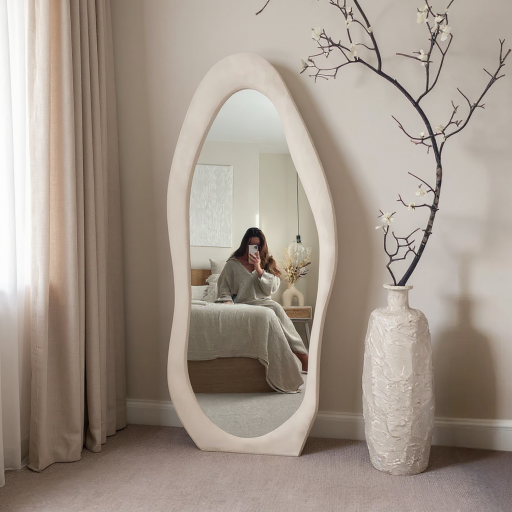Este Espejo Decorativo Irregular con Borde Terciopelo destaca por su forma irregular, distintiva y recubrimiento de terciopelo, añadiendo un toque original a cualquier espacio. Con una amplia superficie reflectante, ofrece una visión clara y completa, ideal para salones, dormitorios o pasillos. Fabricado con materiales de alta calidad, asegura un reflejo nítido y una durabilidad prolongada. Además de ser funcional, sirve como una pieza de arte que puede convertirse en el punto focal del espacio donde elijas colocarlo.