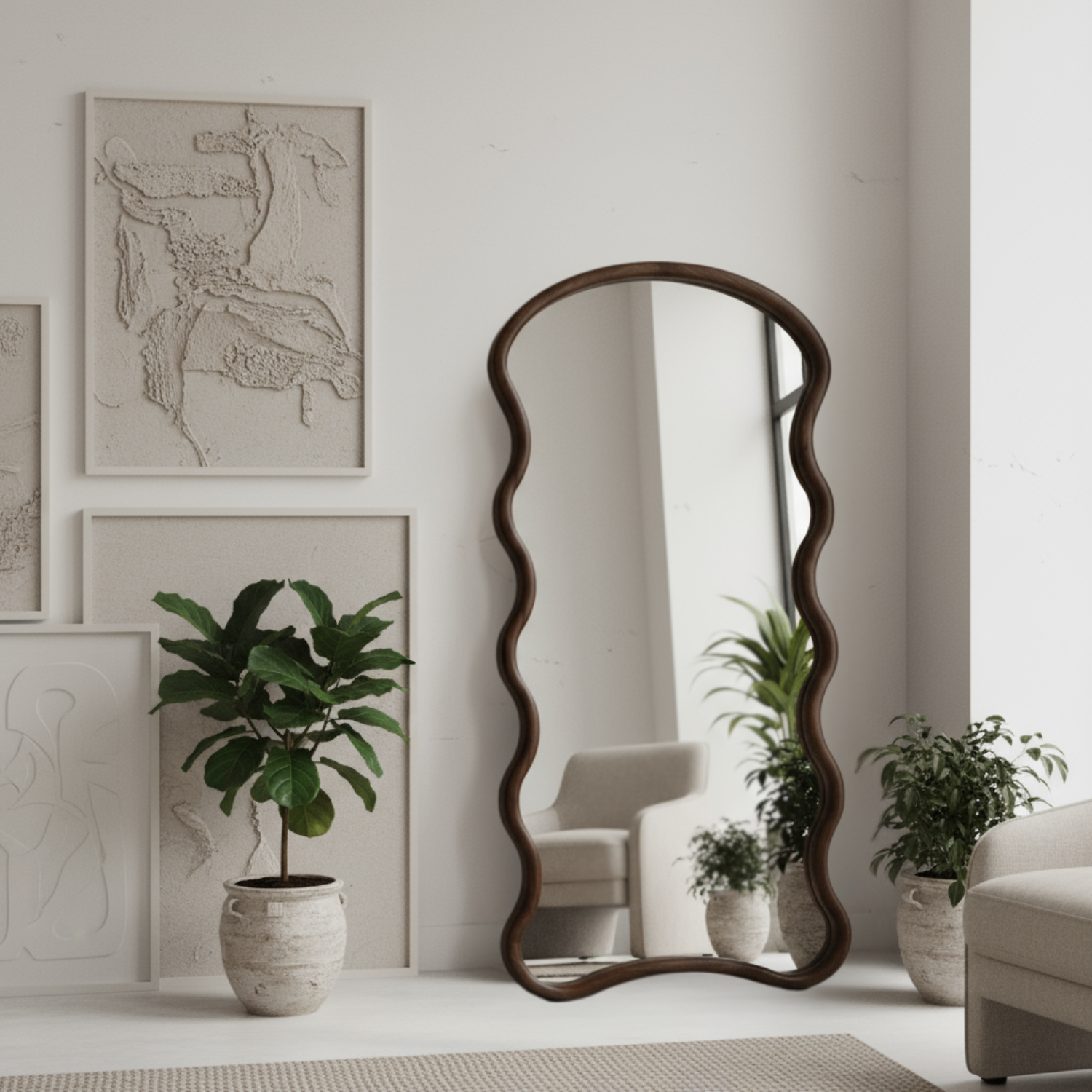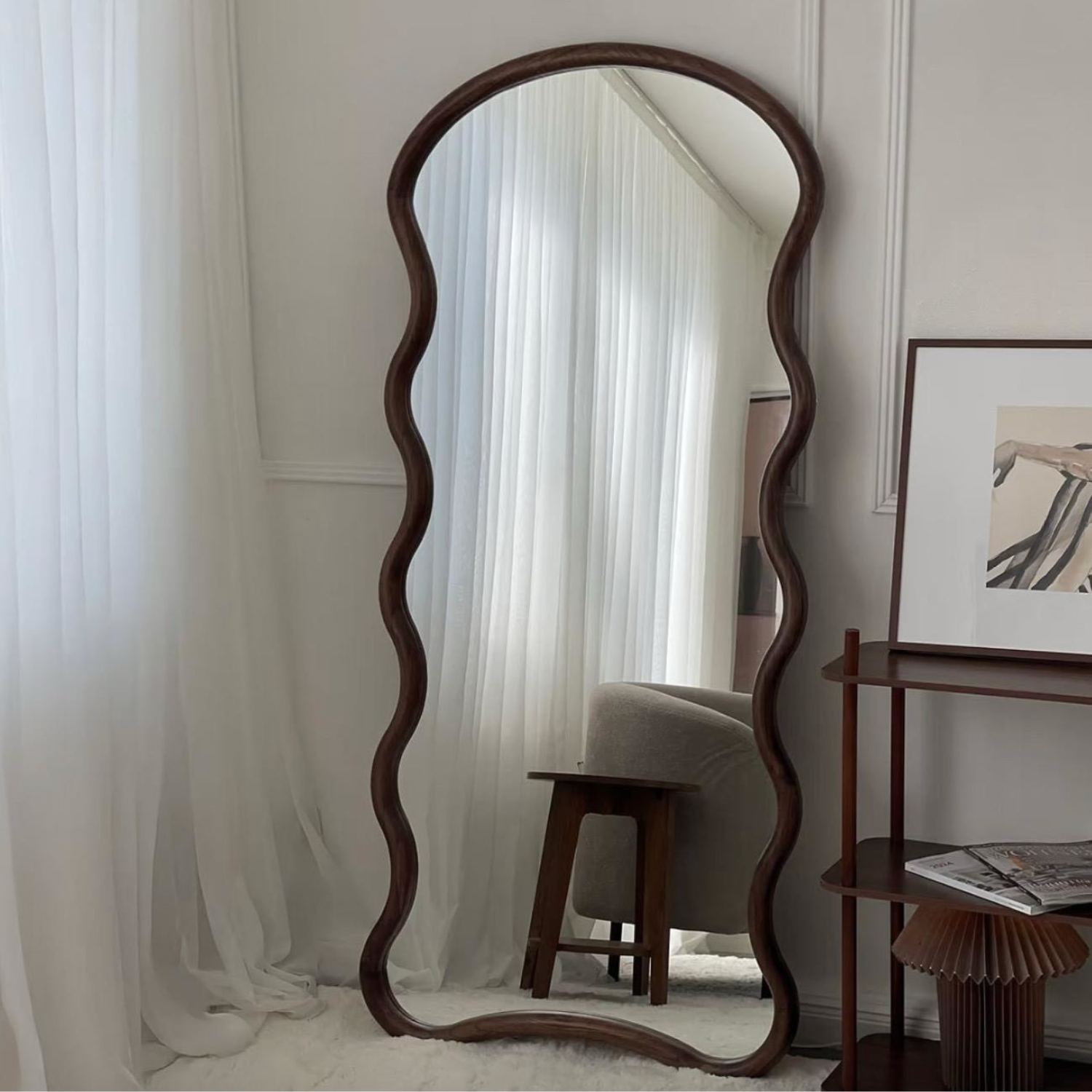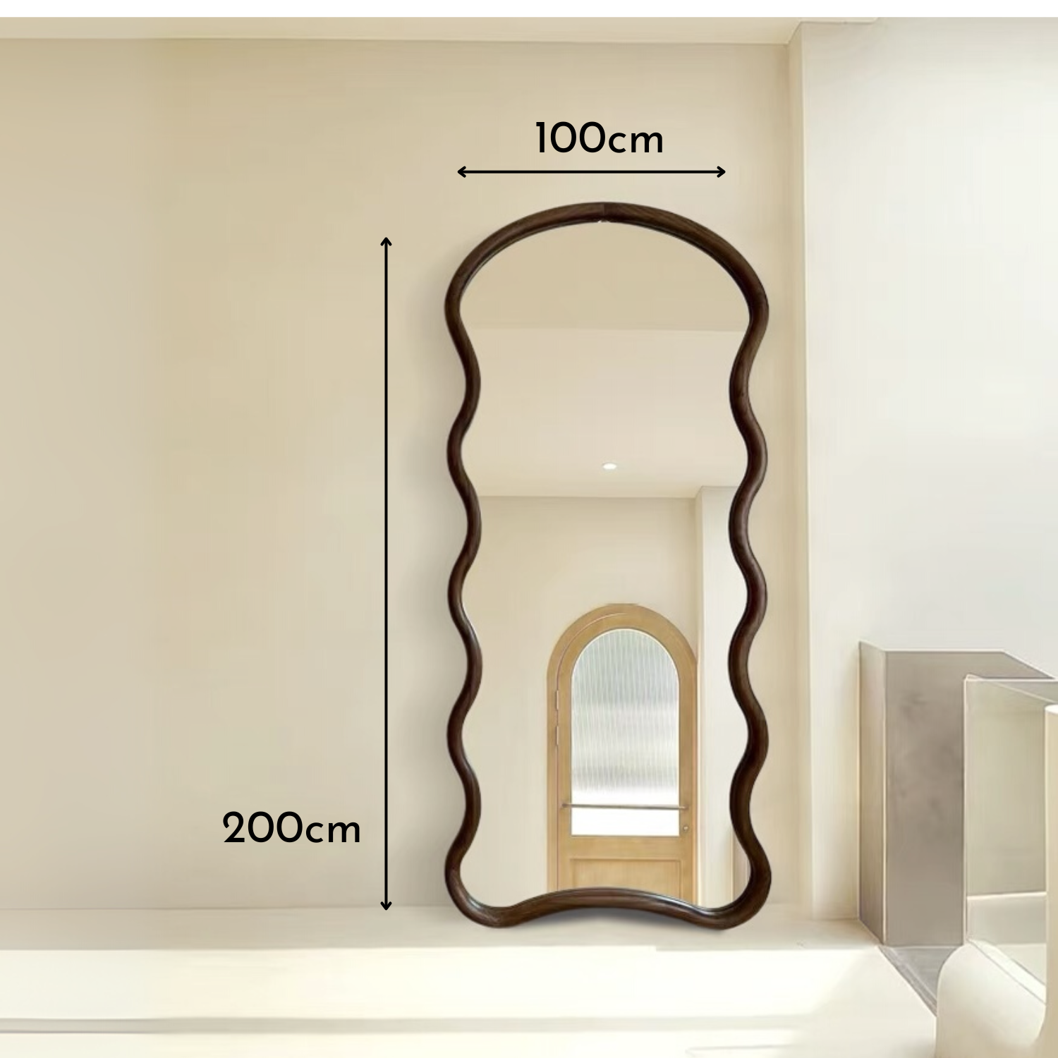 Espejo de Cuerpo Entero con Marco de Madera Maciza de Nogal – Diseño Ondulado 200x100cm