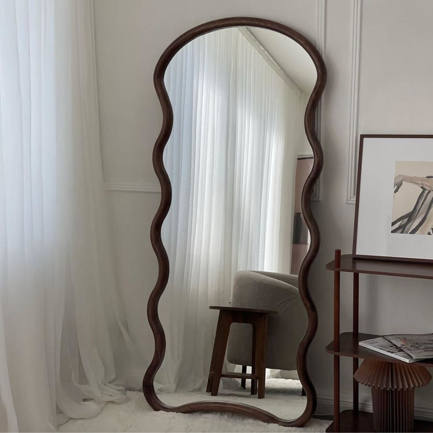 Espejo de Cuerpo Entero con Marco de Madera Maciza de Nogal – Diseño Ondulado 180x80cm