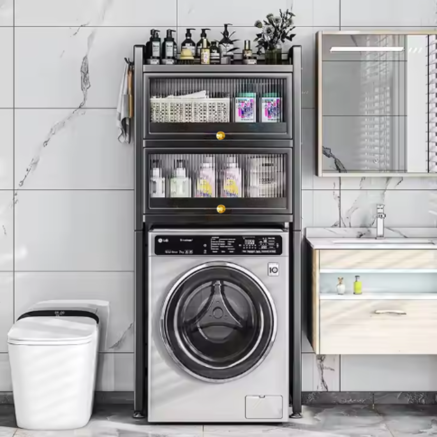 Maximiza el espacio de tu hogar con este Estante Organizador de 2 Niveles para Lavandería. Con su diseño elegante y funcional, este organizador se adapta perfectamente a cualquier ambiente, aportando un toque de estilo y practicidad, fabricado en metal de alta calidad, este estante ofrece una resistencia y durabilidad excepcionales, garantizando un uso prolongado, 2 estantes con puertas este organizador ofrece un amplio espacio para almacenar tus artículos de baño, productos de limpieza, toallas y más. Aprovecha el espacio vertical, ideal para baños o lavaderos con espacio limitado.