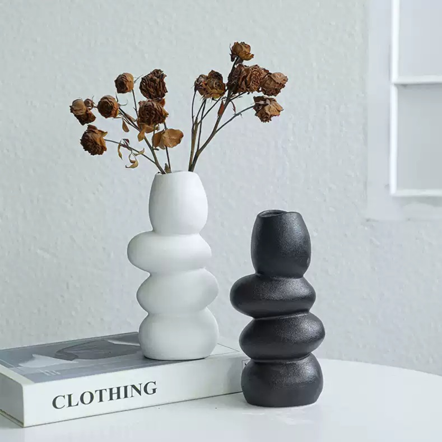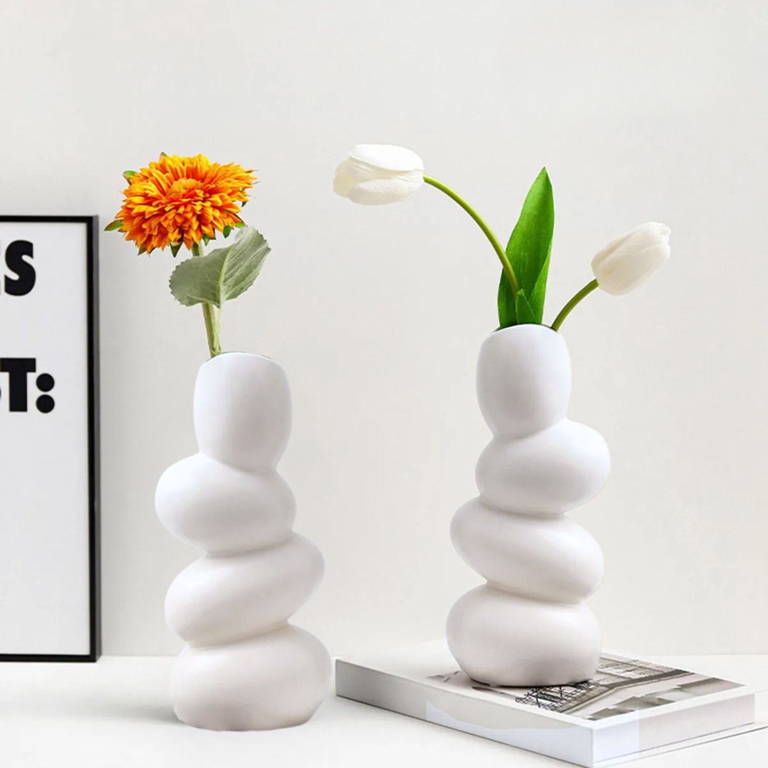 Florero de Cerámica Blanco Stones – Centro de Mesa Moderno y Natural
