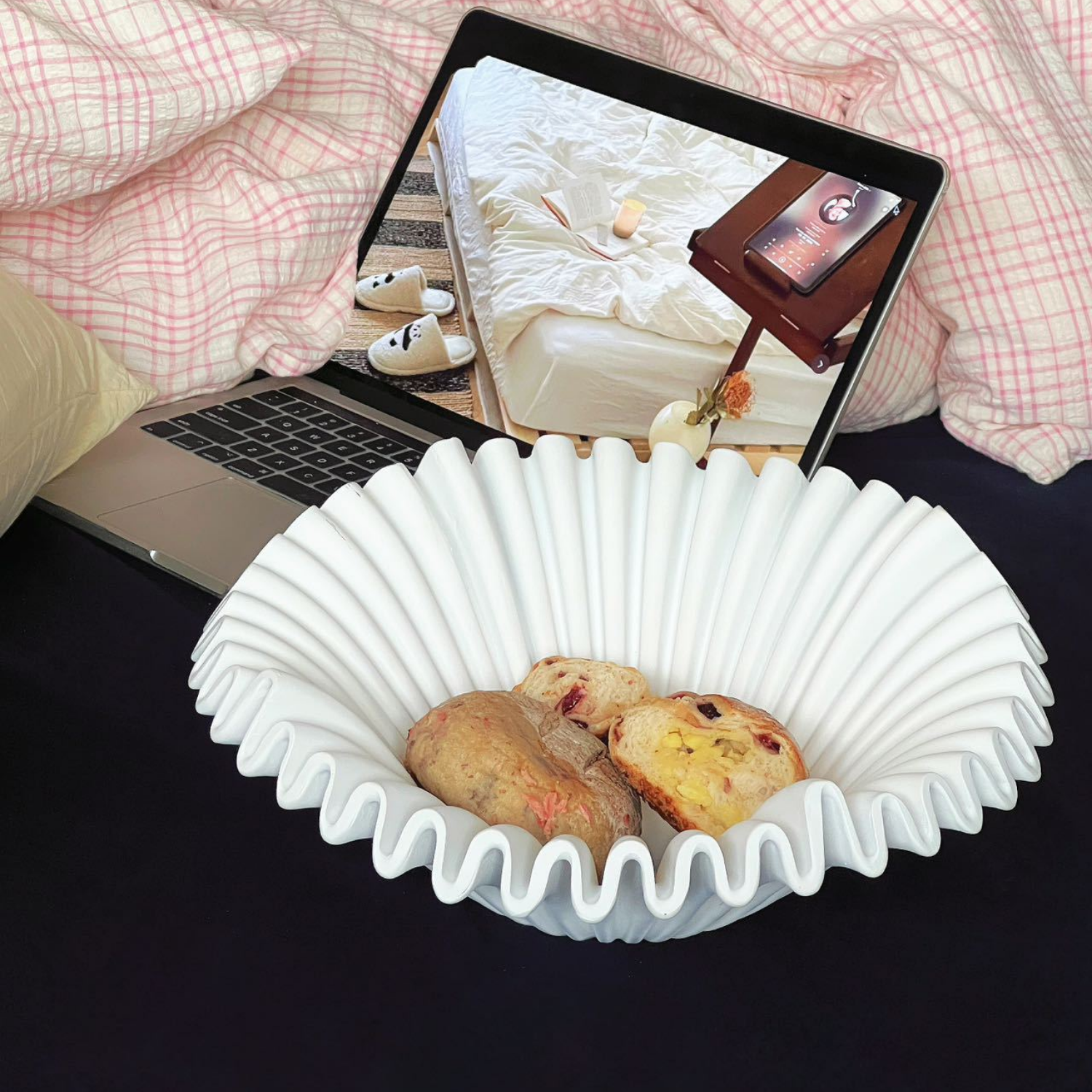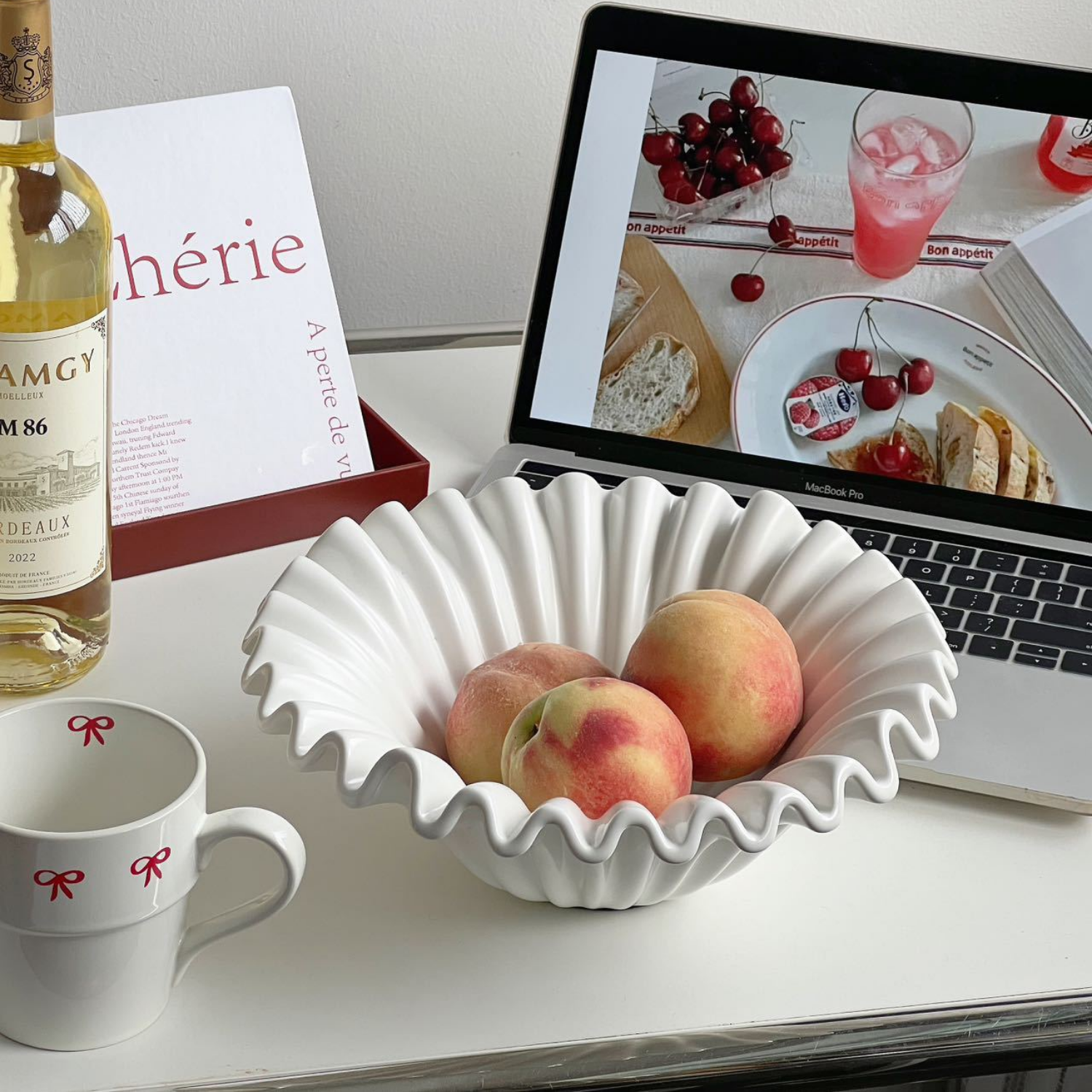 La Fuente estilo Frutero Shell de Cerámica es una pieza decorativa que destaca por su diseño orgánico inspirado en la naturaleza, con dobleces ondulados tipo concha de mar que aportan movimiento, textura y sofisticación a cualquier espacio. Su forma escultórica la convierte en un objeto protagonista, incluso sin contenido en su interior.