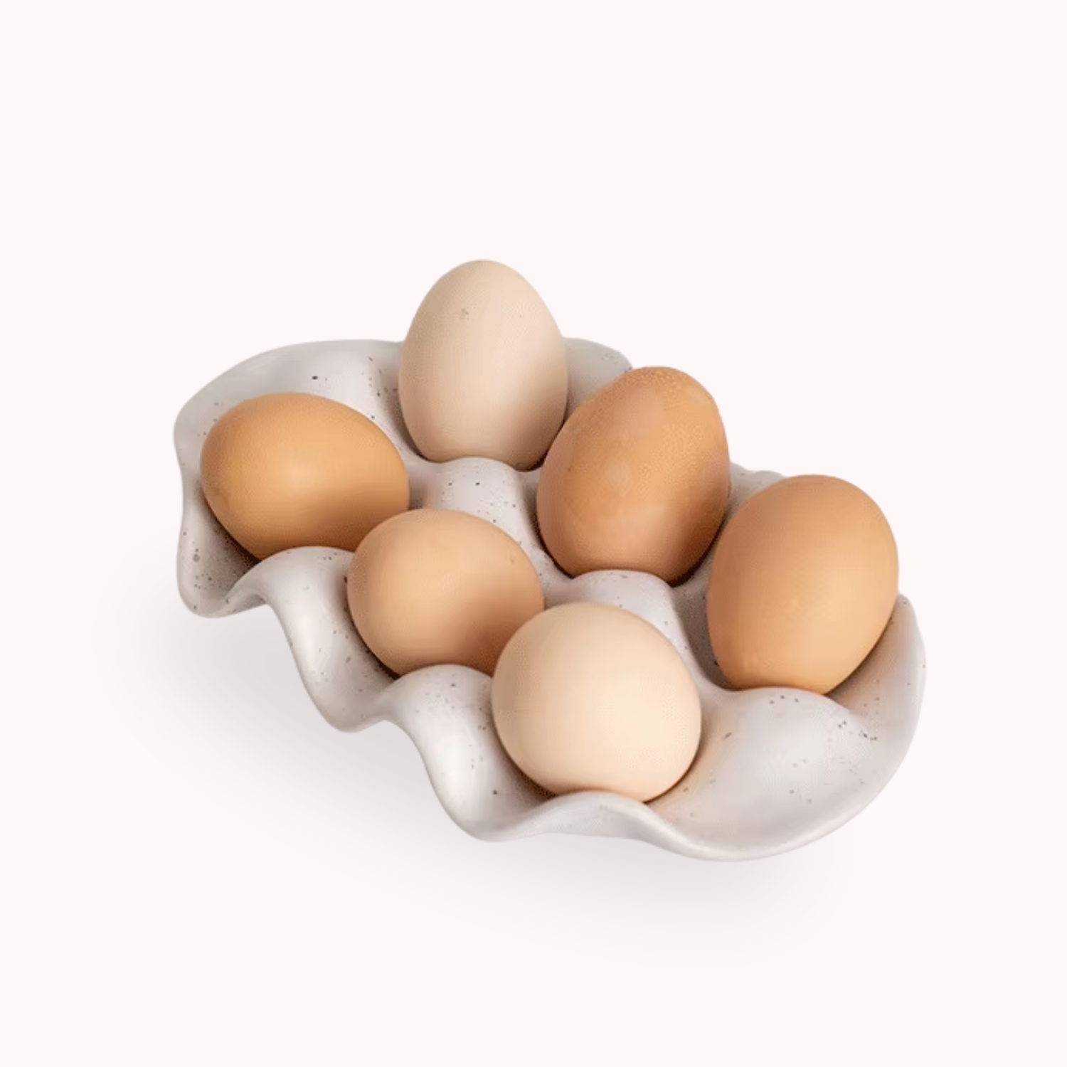 Fabricada en cerámica de alta calidad, esta bandeja porta huevos presenta un diseño limpio y contemporáneo que luce perfecta a la vista, ya sea sobre la encimera, la mesa del desayuno o una repisa. Cada espacio está cuidadosamente moldeado para mantener los huevos firmes y seguros, evitando que rueden o se golpeen entre sí.