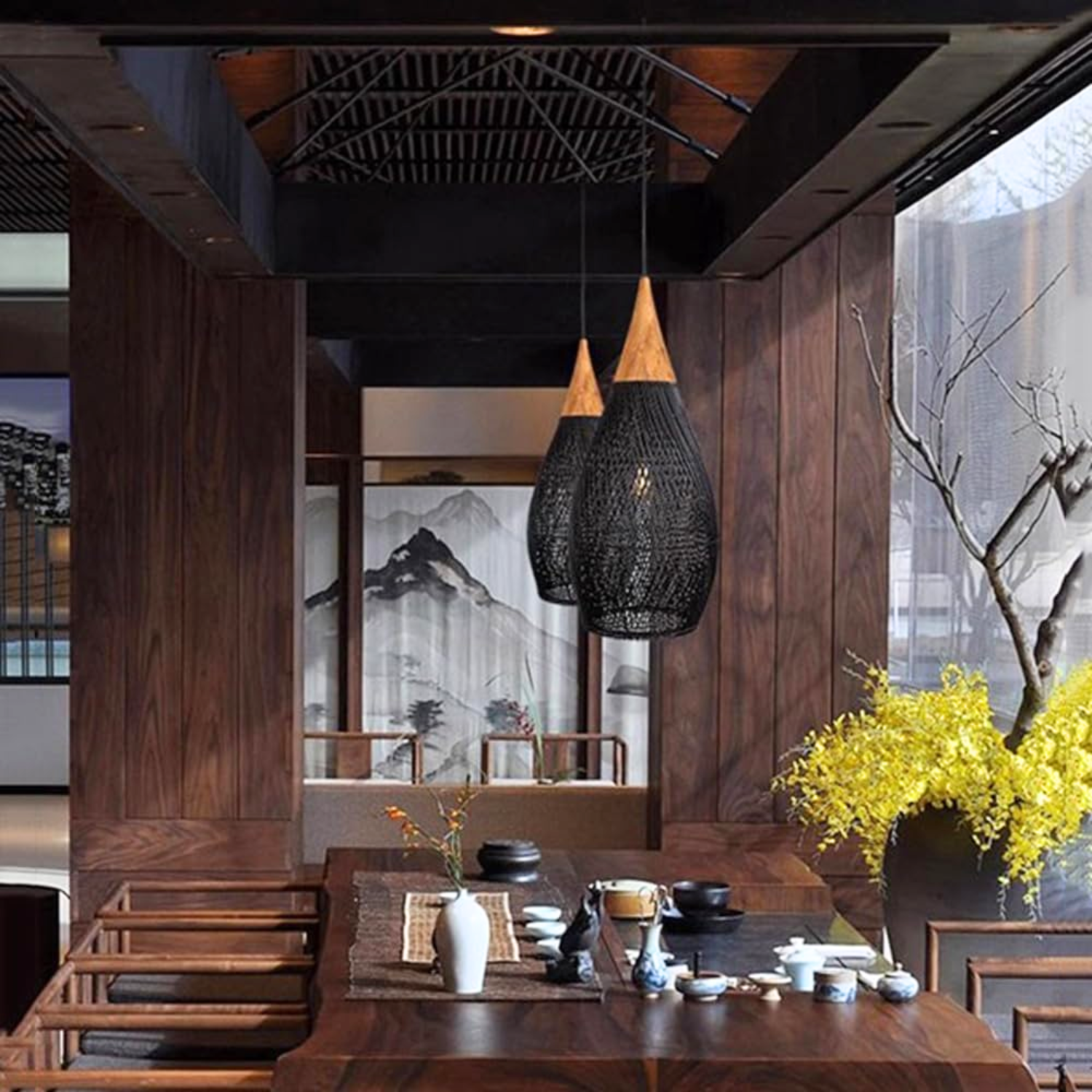 Lámpara Colgante Ratán Negro Gota 25 cm