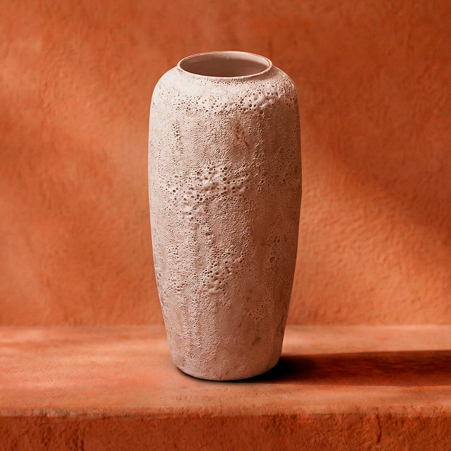 Fabricado artesanalmente en cerámica, destaca por su apariencia robusta, textura porosa y tonalidad neutra, lo que permite combinarlo fácilmente con diversos estilos de decoración: escandinavo, boho, wabi-sabi, minimalista o rústico moderno. Es perfecto para acompañar con flores secas, ramas decorativas o simplemente como elemento escultural.
