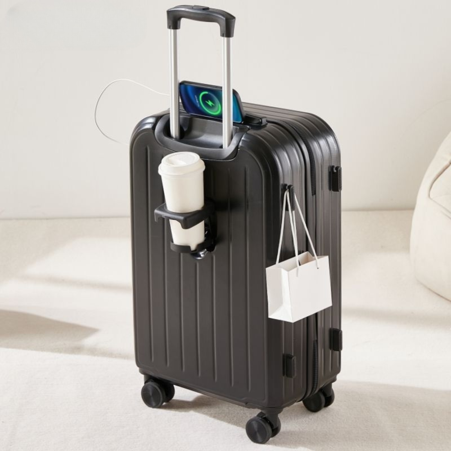 Mantente conectado incluso en tus viajes, con esta moderna Maleta de Cabina con Puerto USB. Olvídate de los equipos descargados por tener que abrir una y otra vez tu Valija. Guarda el PowerBank que tengas en tu casa cargado en el interior y usa la salida USB de la Maleta. Disfruta también del resto de sus características: Asa Expandible en 2 medidas, Perchas a los costados para colgar compras de último minuto, cierres bidireccionales, candado de seguridad para que nadie abra la cremallera, ruedas que giran en 360º para trayectos del aeropuerto, portavasos plegable, diferentes compartimientos con cierrre, y hebilla de seguridad de ropa. Fabricada en Policarbonato ABS/PC es resistente y a la vez Ligera. Su peso vacío es de 2.4 Kg. Capacidad 33 Litros