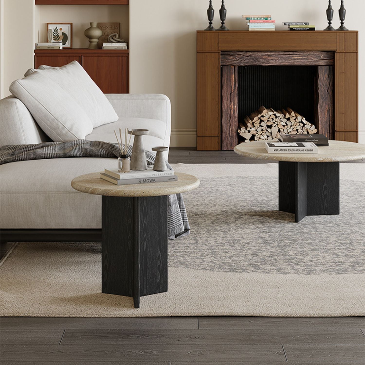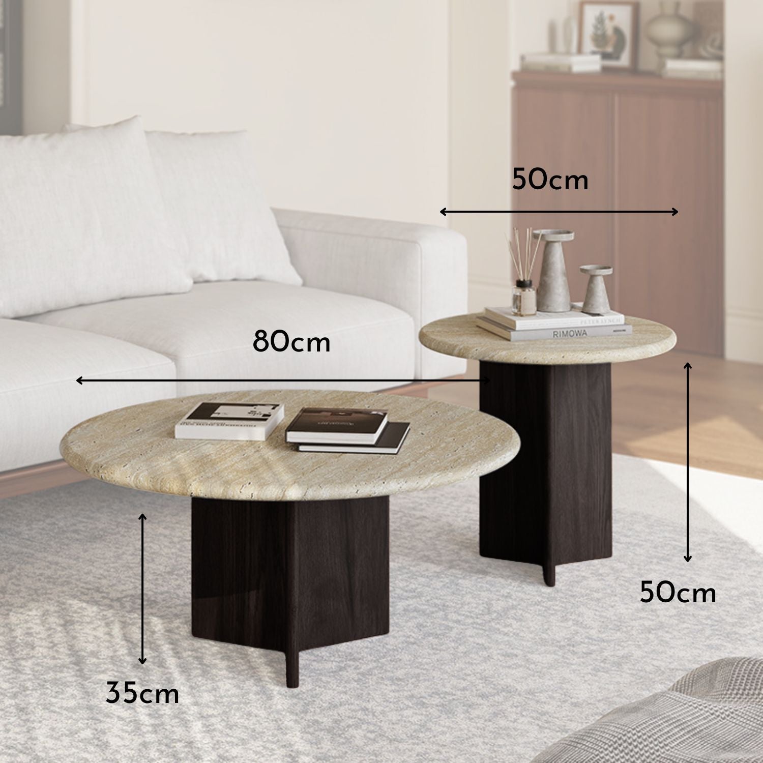 Mesa de Centro Doble en Travertino Tono Wengue | Diseño Minimalista y Funcional