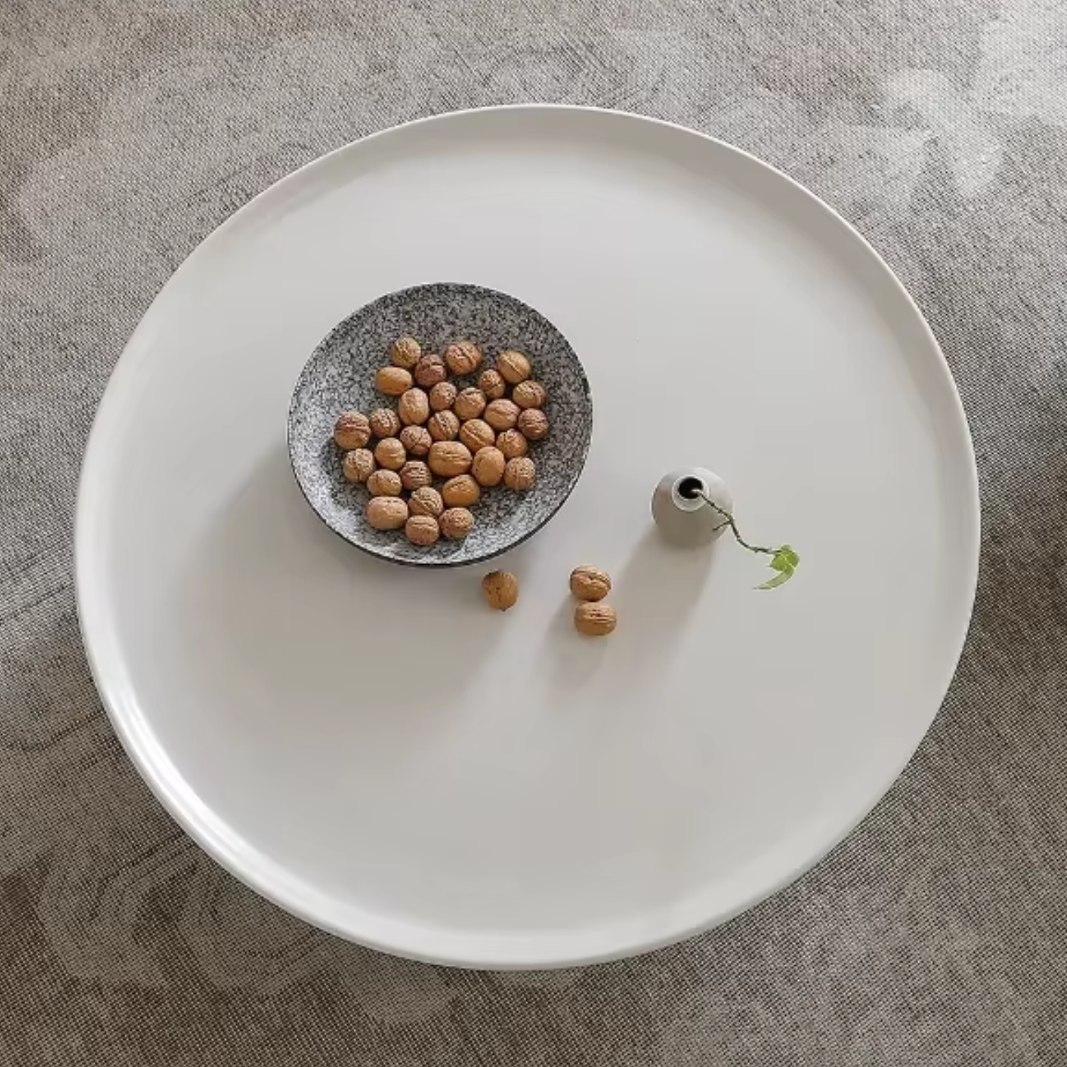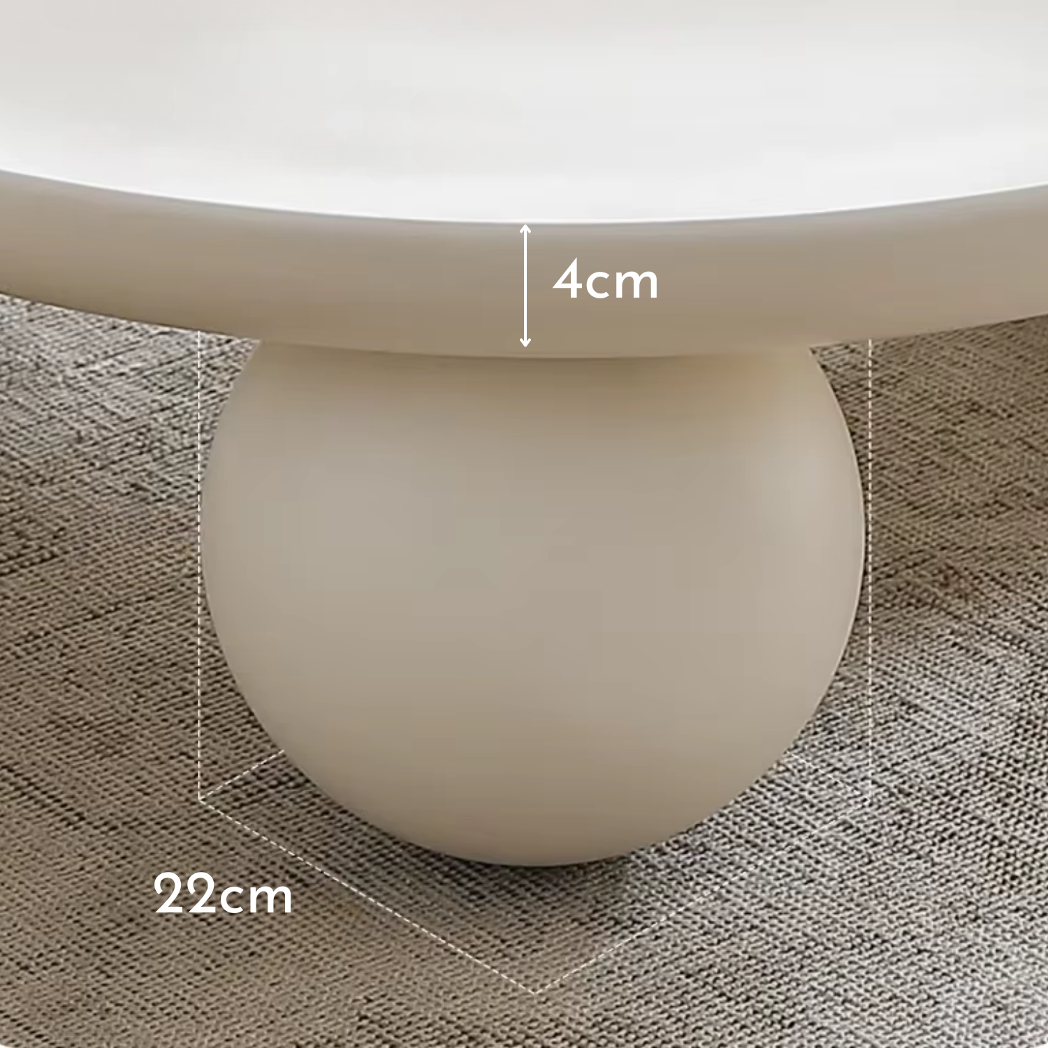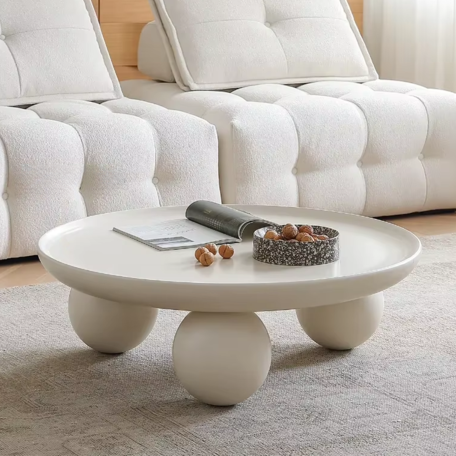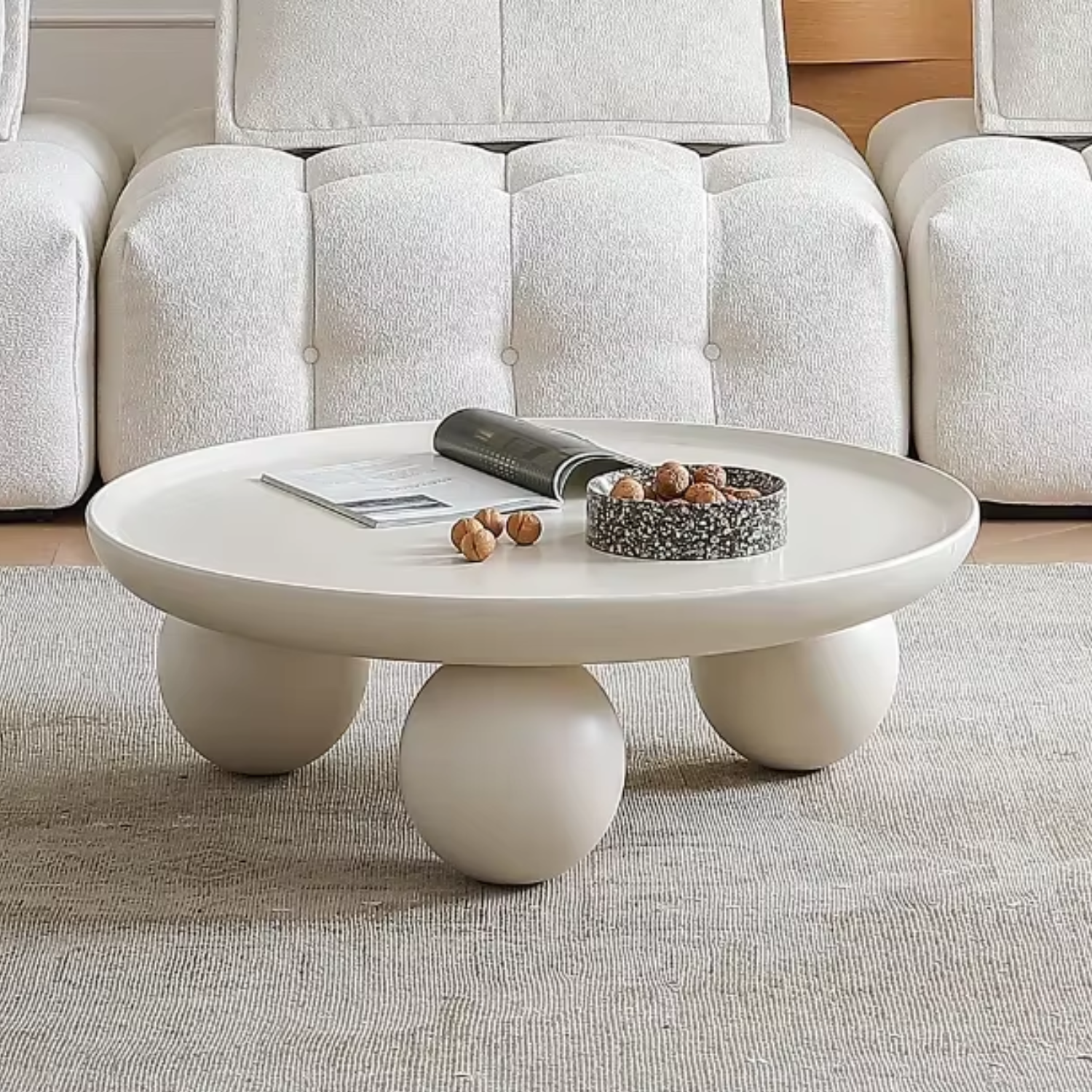 Su forma redonda y baja, combinada con patas esféricas de diseño, aporta equilibrio visual y un aire contemporáneo, ideal para ambientes que buscan estética minimalista, estilo nórdico o una vibra orgánica moderna. Esta mesa no solo es funcional, sino también una pieza escultural que se roba las miradas.