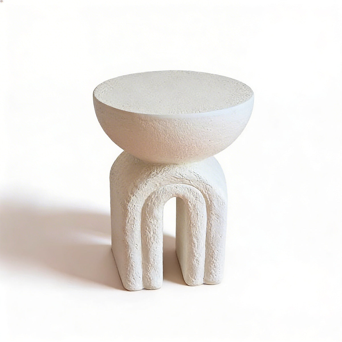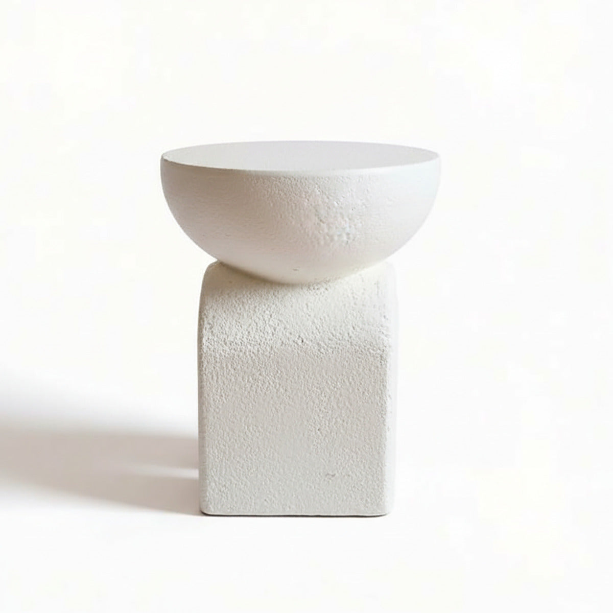 La mesa lateral Zenit es una pieza de diseño que abraza la filosofía Wabi-Sabi, celebrando la belleza de lo imperfecto y lo natural. Su estructura geométrica, compuesta por una base en arco y una superficie superior de formas orgánicas, crea un equilibrio visual que transmite serenidad y sofisticación. Con una textura rugosa que evoca la piedra tallada a mano, esta mesa es el complemento ideal para espacios que buscan un estilo minimalista cálido o rústico moderno.