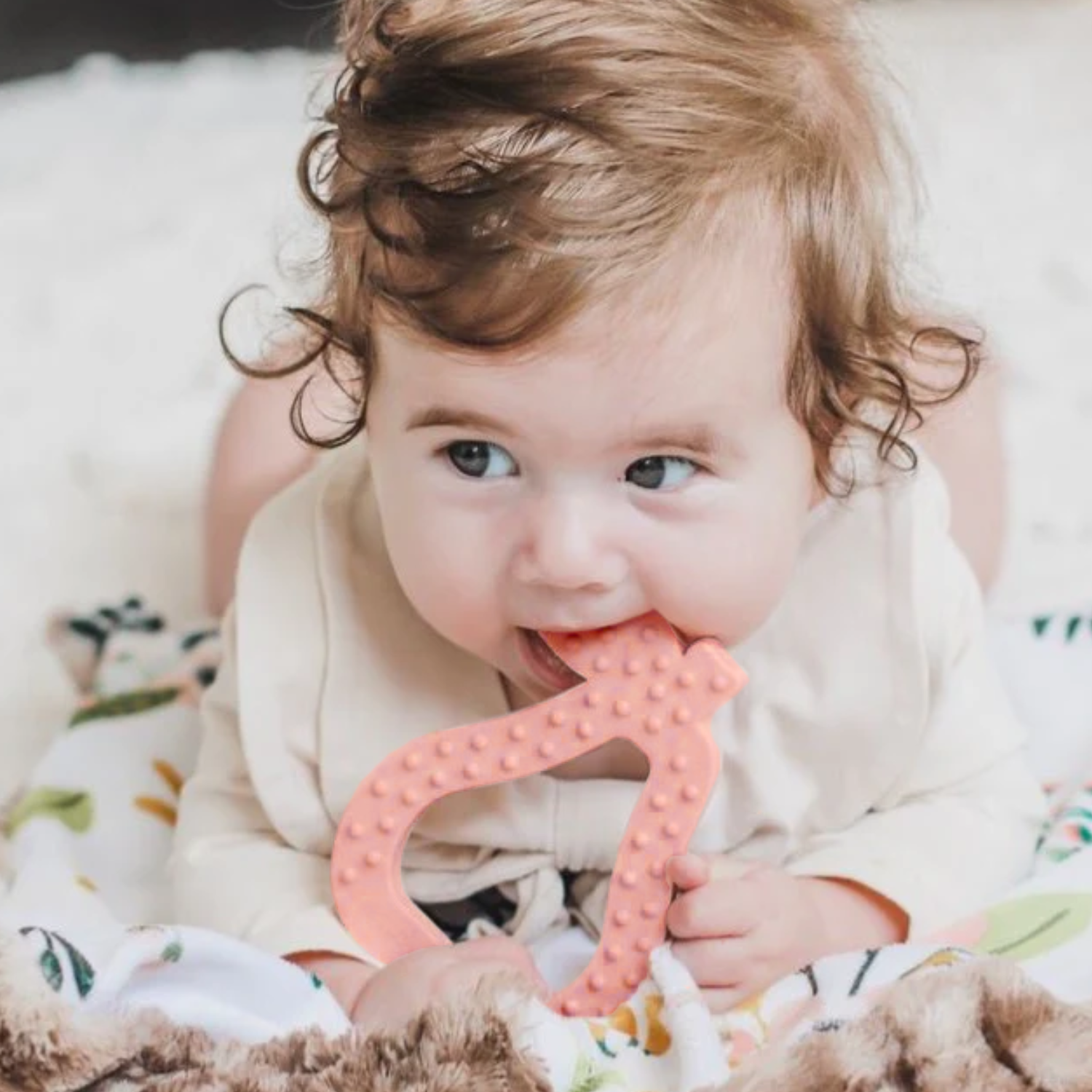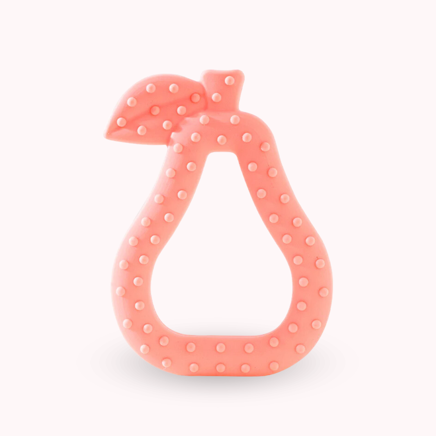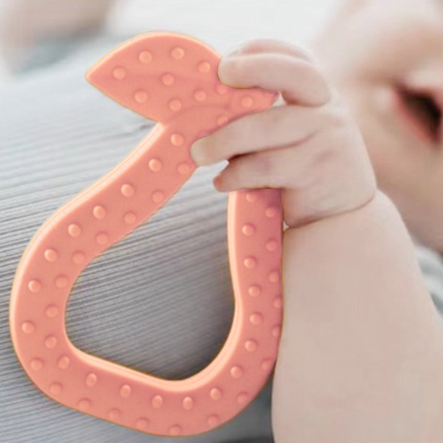 Alivia el proceso de dentición de tu Bebé con este Mordedor de Silicona con Texturas en forma de Fruta. Ideal para etapa de 4 a 12 meses. Su diseño Texturizado con Relieves masajea sus mandíbulas en tanto logra jugar, masticar y morder el Accesorio. Fabricado en Silicona de grado alimenticio, libre de BPA. Seguro para Refrigerador y apto para Lavavajillas y Esterilizadores. Estimula la exploración de la lengua y el desarrollo del habla.