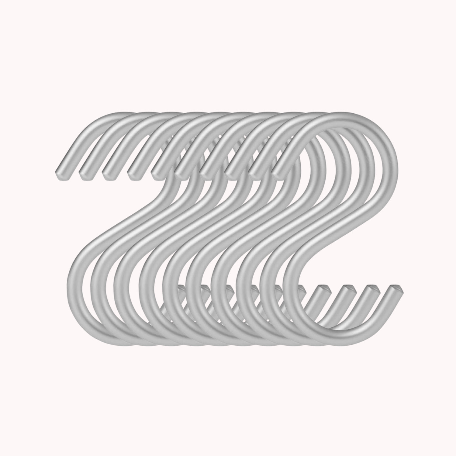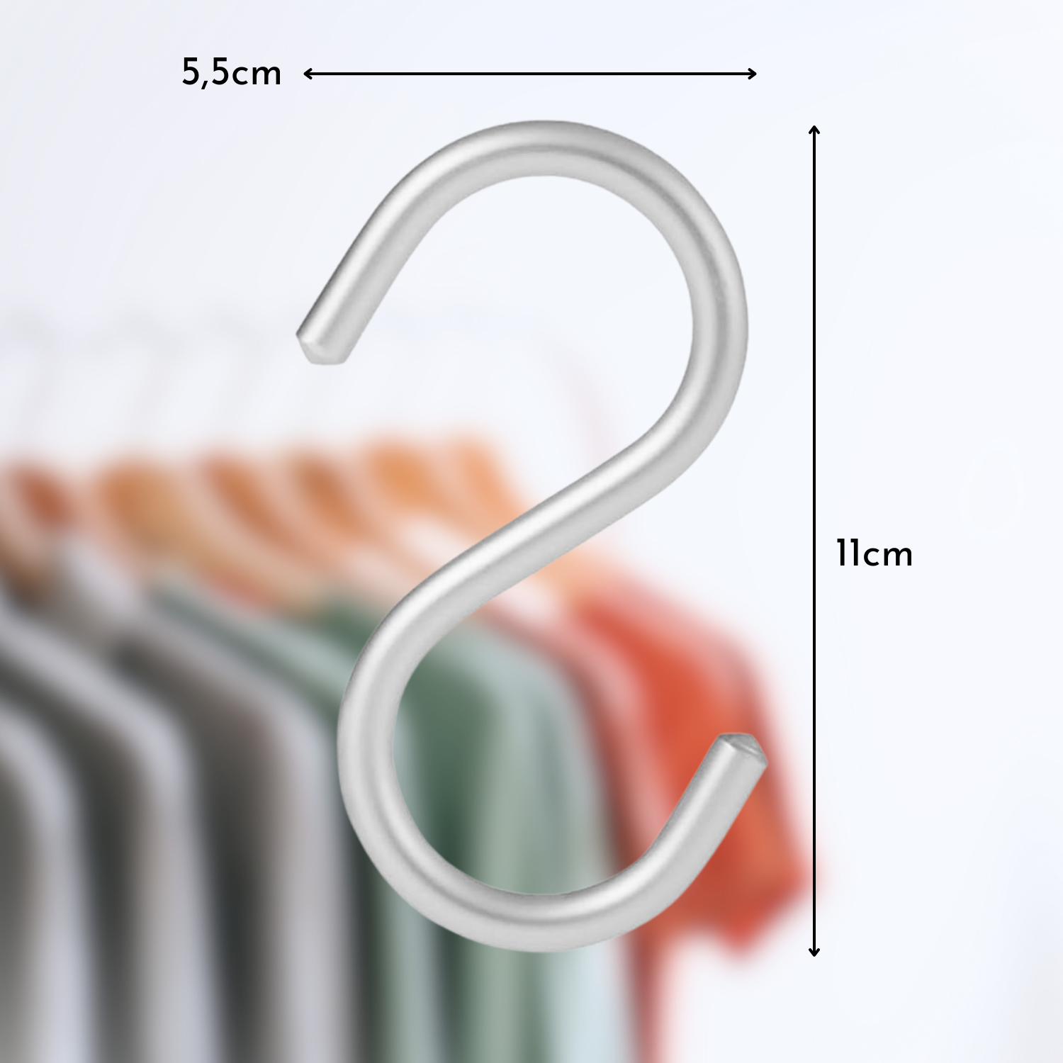 Set de 10 Ganchos en Forma de S Plateados 110x55mm – Aluminio Resistente