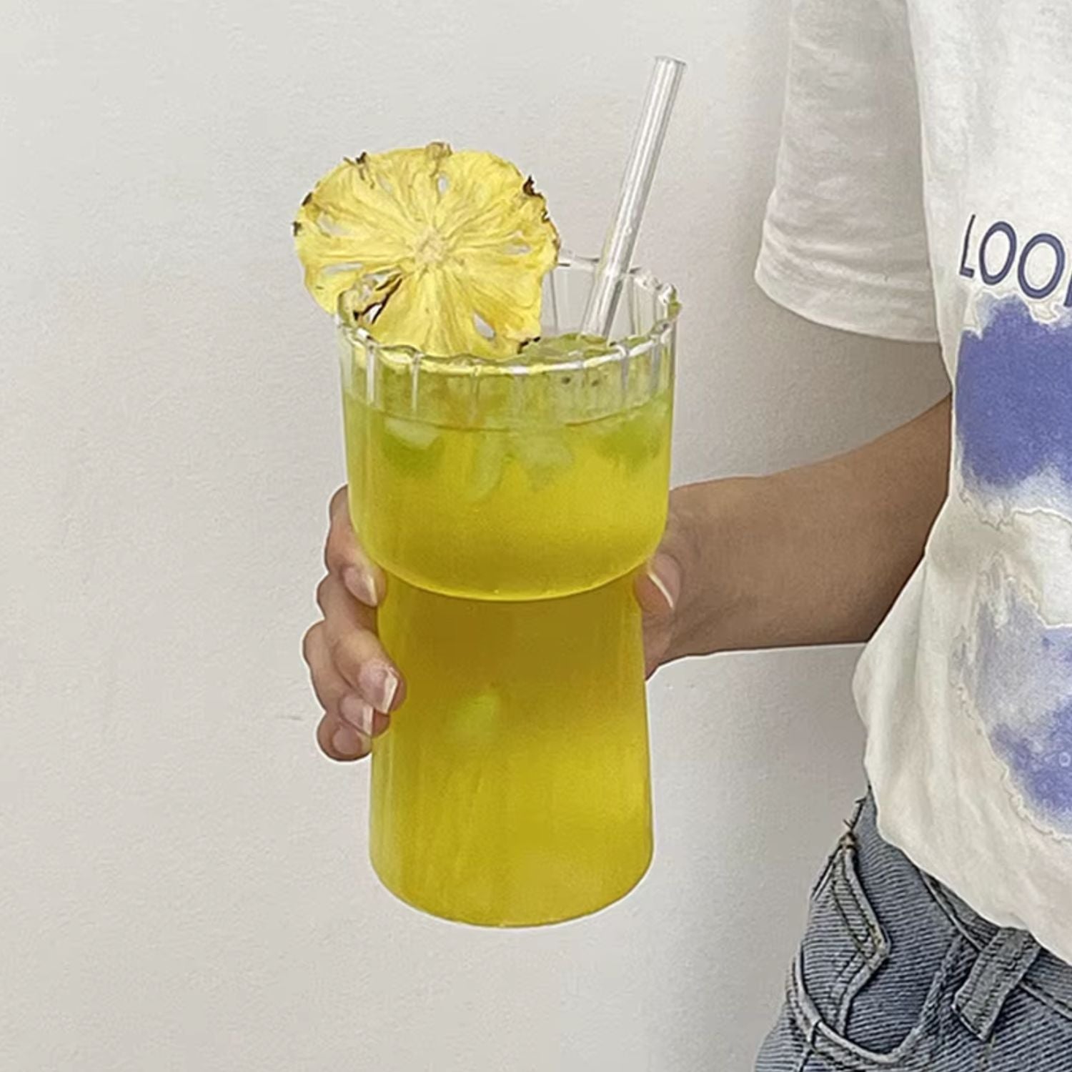 Con una capacidad generosa de 590 ml, estos vasos son ideales para servir café helado, jugos naturales, leche, agua saborizada o cócteles. Fabricados en vidrio grueso y resistente, permiten apreciar el color y la textura de cada bebida, realzando la experiencia visual y sensorial.