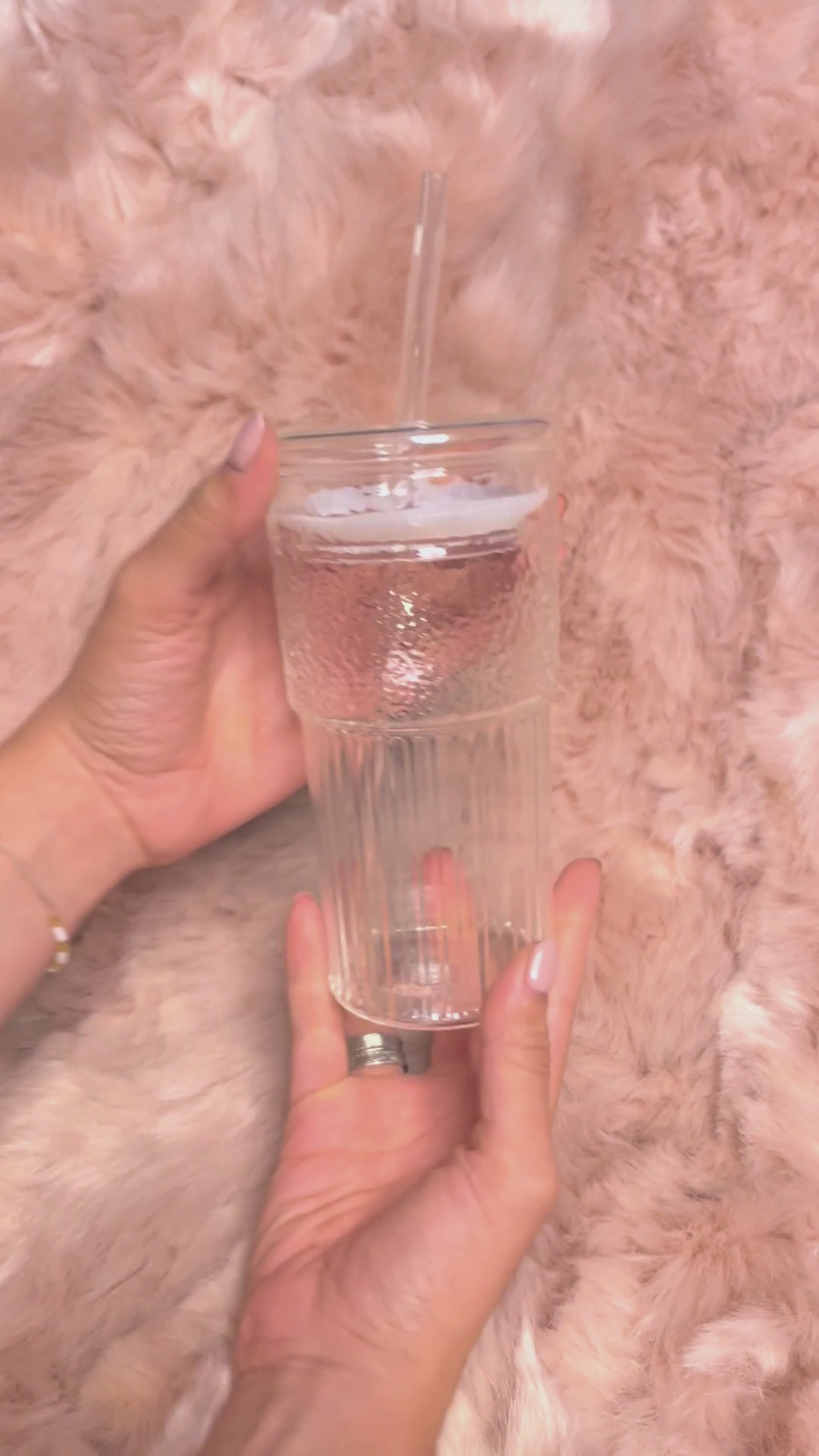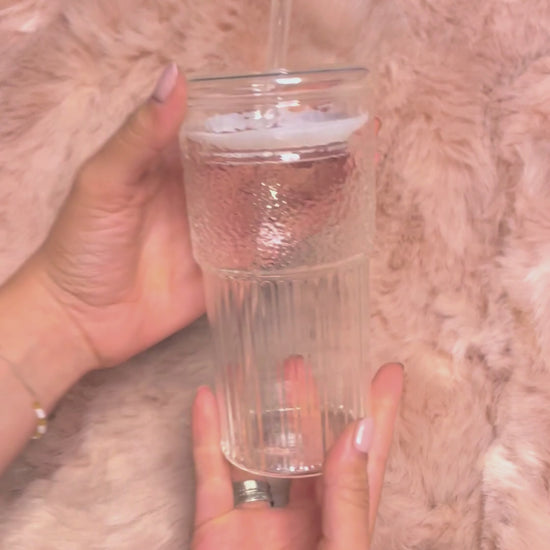 Set 2 Vasos Vidrio con Bombilla y Tapa Perlado 500ml