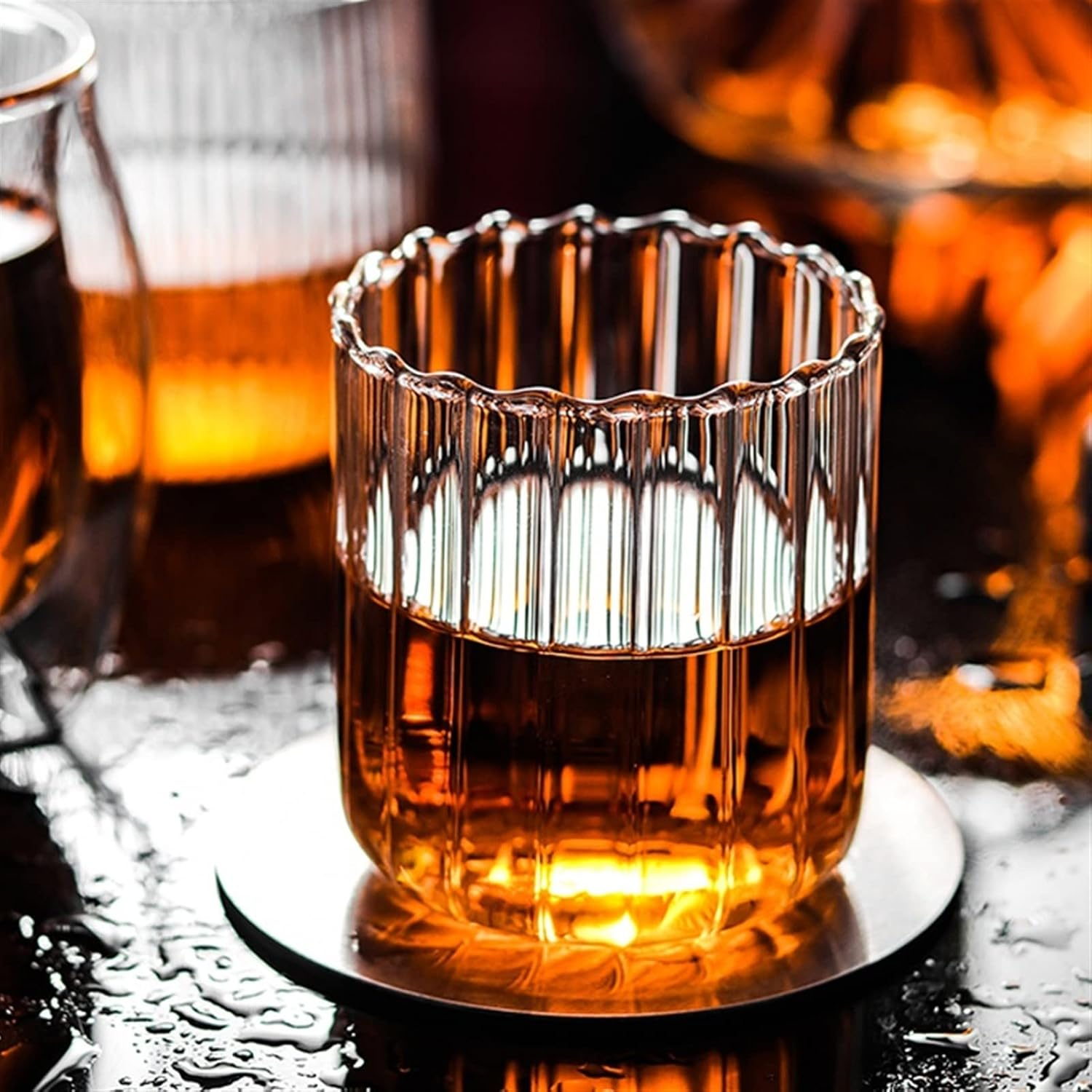 Set 4 Vasos Vidrio Diseño Ondas con Bombilla 510ml