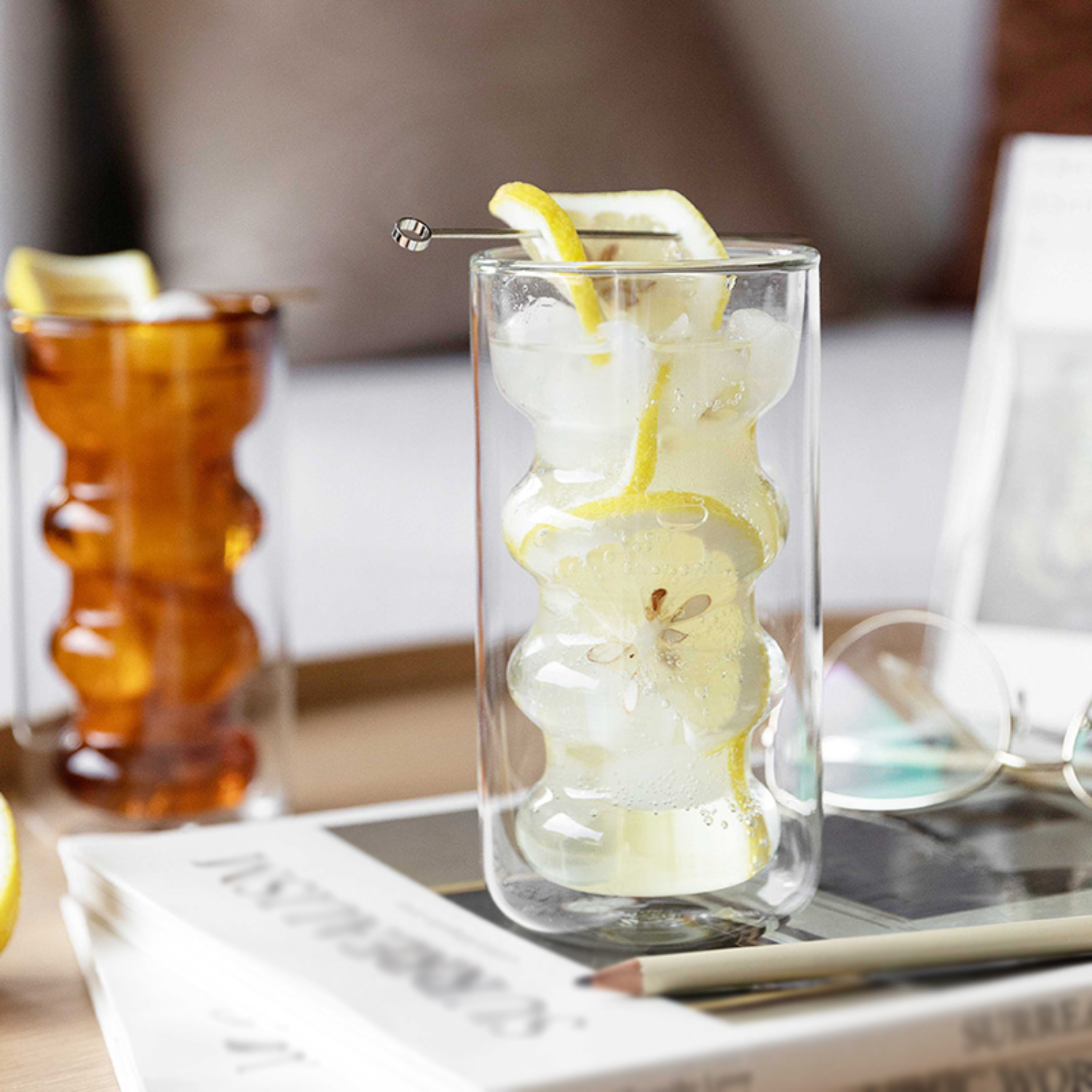 Set de 4 Vasos de Vidrio Doble Fondo Ondas Alto 300 ml