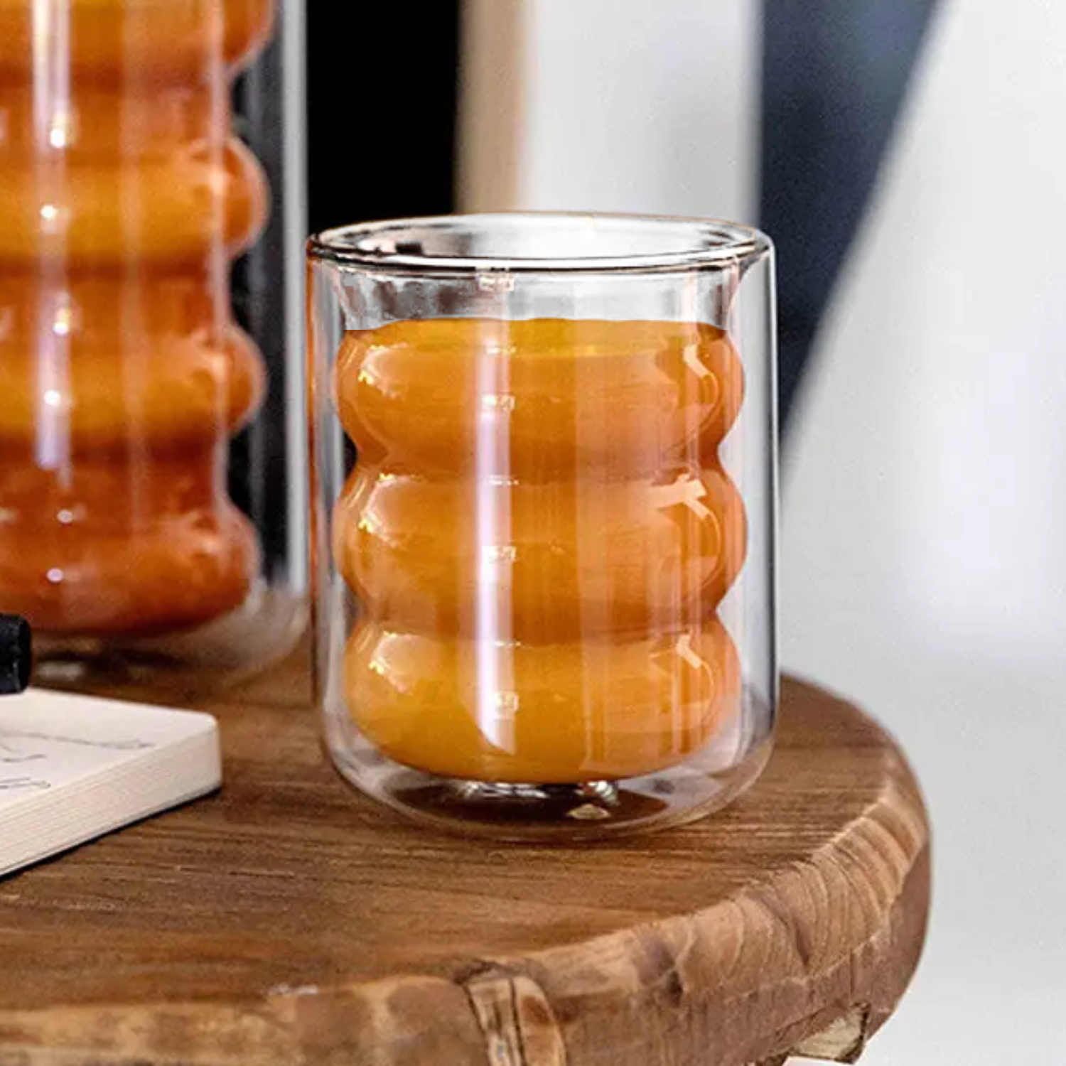 PREVENTA - Set 4 Vasos Vidrio Doble Fondo Ondas Bajo