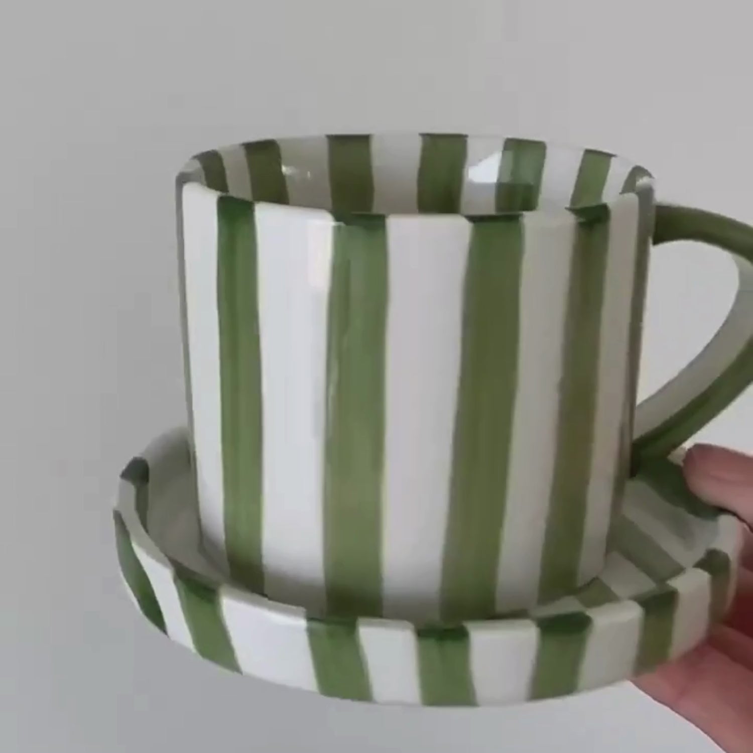 Set de Platos y Tazas Rayas Vintage Verde 3 unidades – Diseño de Franjas Verticales