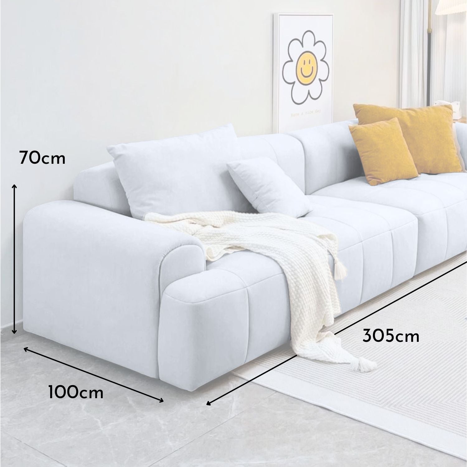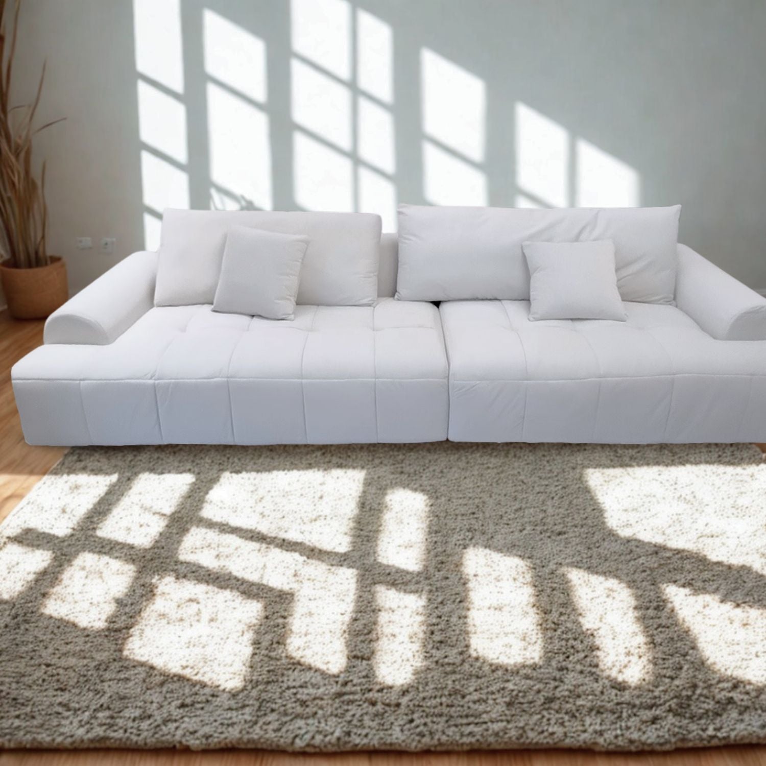 Este Sofá Seccional estilo Lounge Moderno es la pieza ideal para transformar cualquier espacio, gracias a su diseño elegante y contemporáneo en color blanco. Con una longitud de 305 cm distribuidos en dos módulos, ofrece gran capacidad para 4 personas o más, permitiendo sentarse cómodamente o recostarse con total libertad. Tapizado en suave tela de felpa y acompañado de cojines decorativos, aporta calidez y sofisticación a tu sala. Su estructura de Madera Resistente garantiza durabilidad, mientras que su diseño modular permite usarlo en conjunto o por separado, adaptándose a distintas necesidades de espacio y estilos. Es cómodo, versátil y full tendencia; este sofá es el equilibrio perfecto entre funcionalidad y estilo.