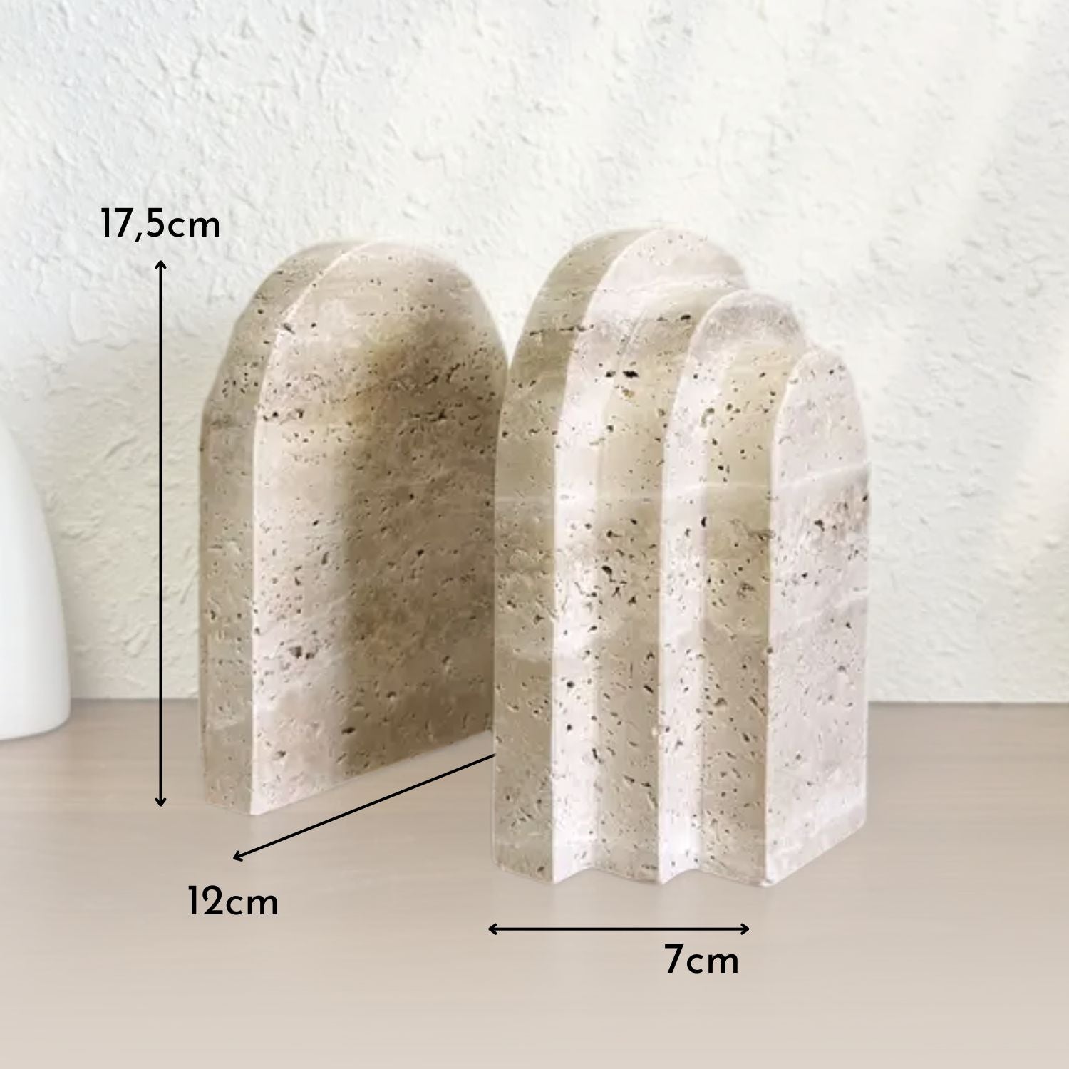 Sujetalibros Escultura Griega Travertino – Set de 2 Soportes Decorativos Estilo Piedra