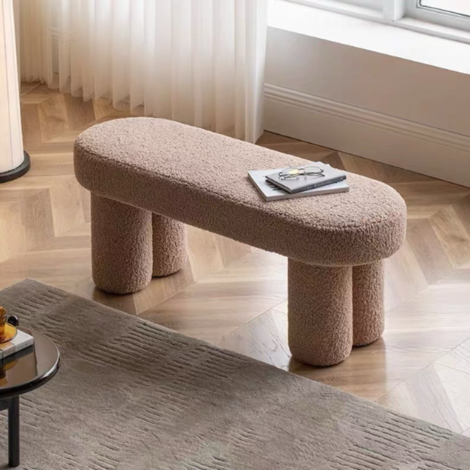 Eleva la estética y comodidad de tus espacios con el Taburete Estilo Banquete Sherpa Mocha Crème, una pieza versátil y moderna que combina diseño, textura y funcionalidad. Gracias a su altura ideal para descanso de pies y su amplio cuerpo, este taburete se adapta perfectamente a la sala de estar, dormitorio, vestidor, tiendas o espacios de oficina.