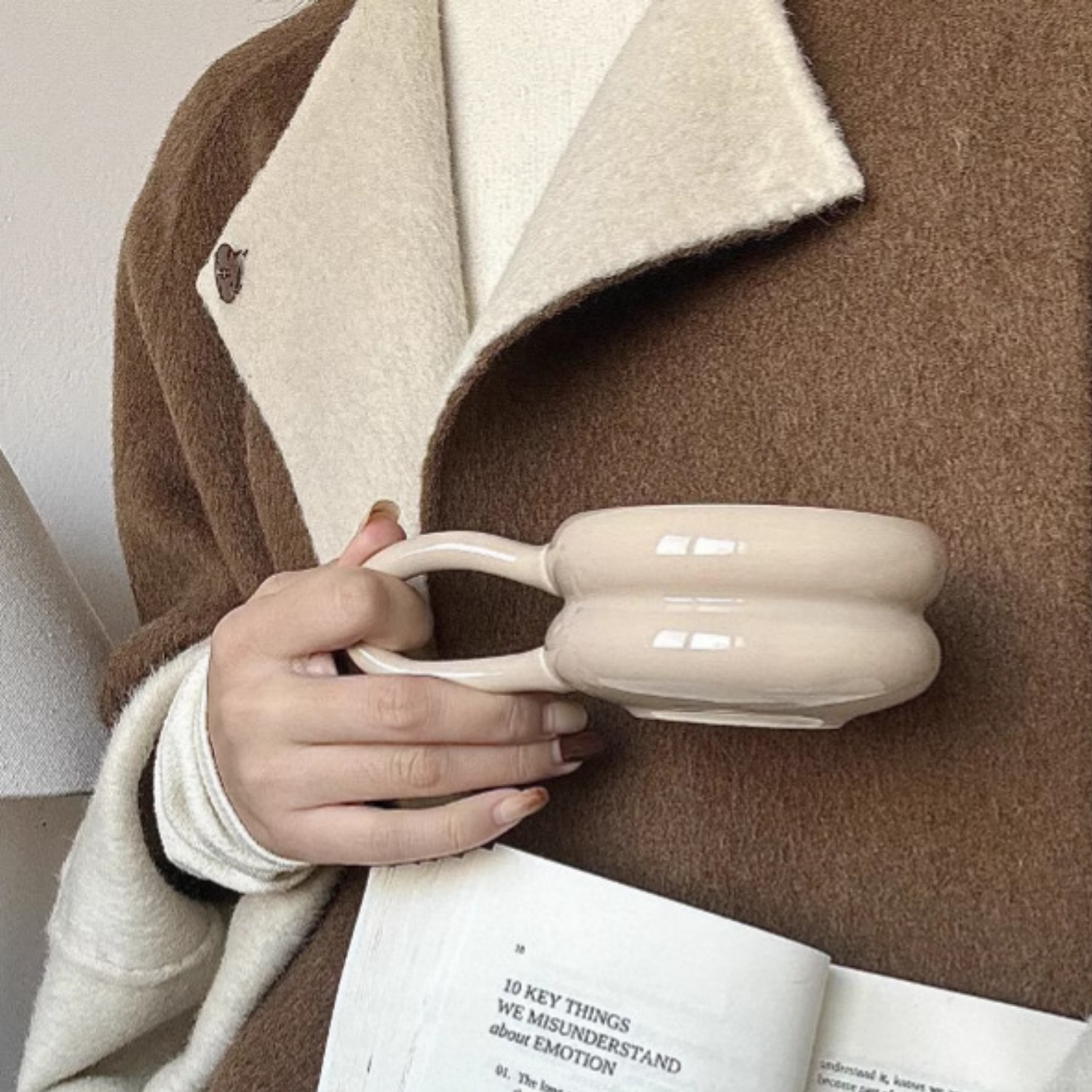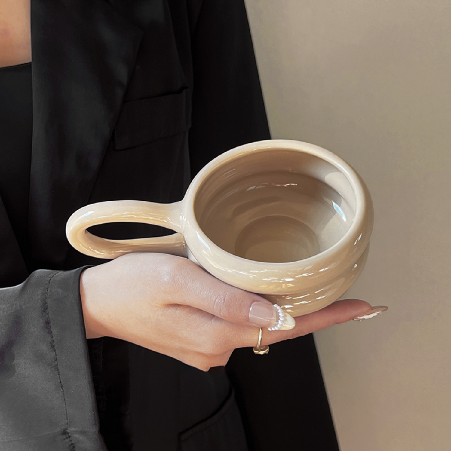 Fabricada en cerámica de alta calidad, su diseño distribuye la capacidad de 250 ml a lo largo del cuerpo de la taza, creando una silueta envolvente y moderna. Los característicos óvalos del diseño Bubba aportan textura y personalidad, mientras que su asa prominente y ergonómica garantiza un agarre cómodo y seguro.