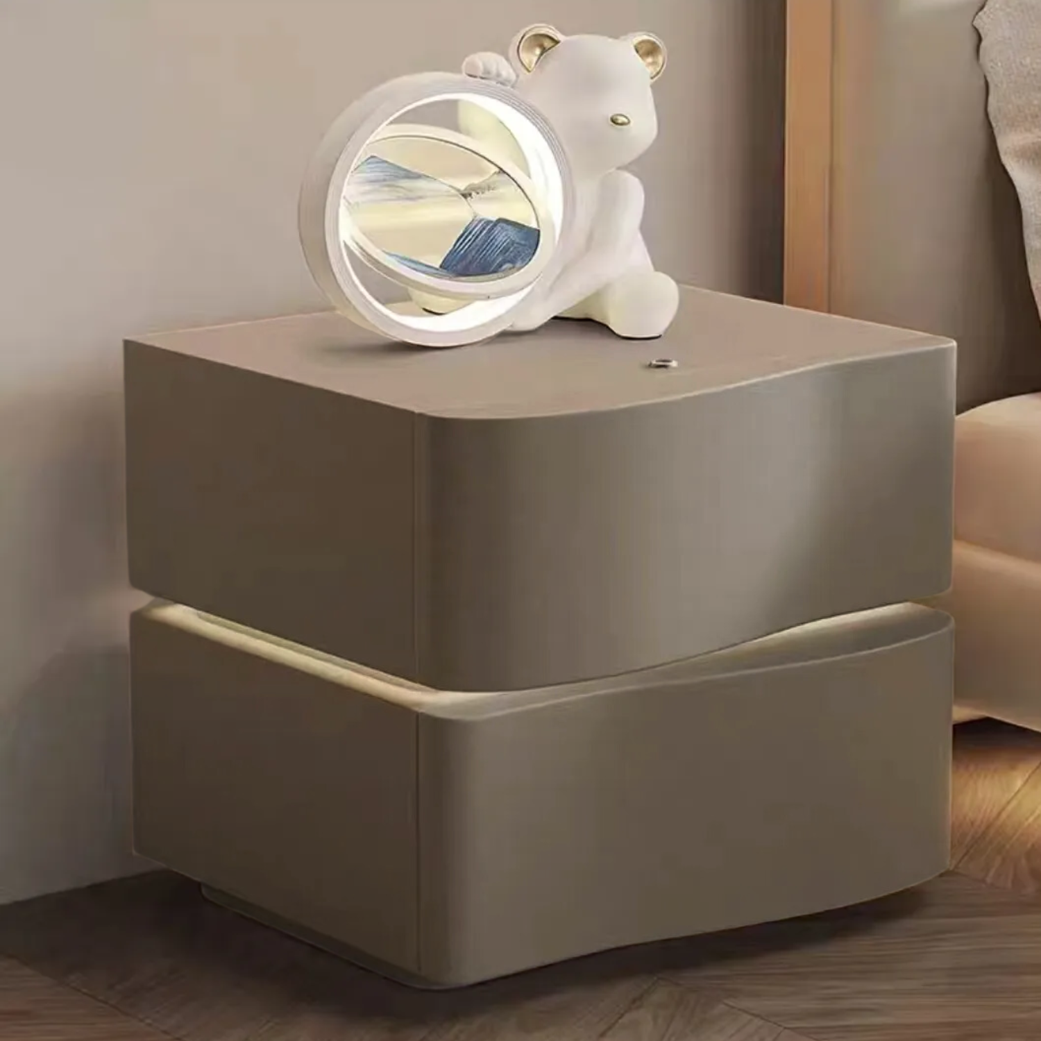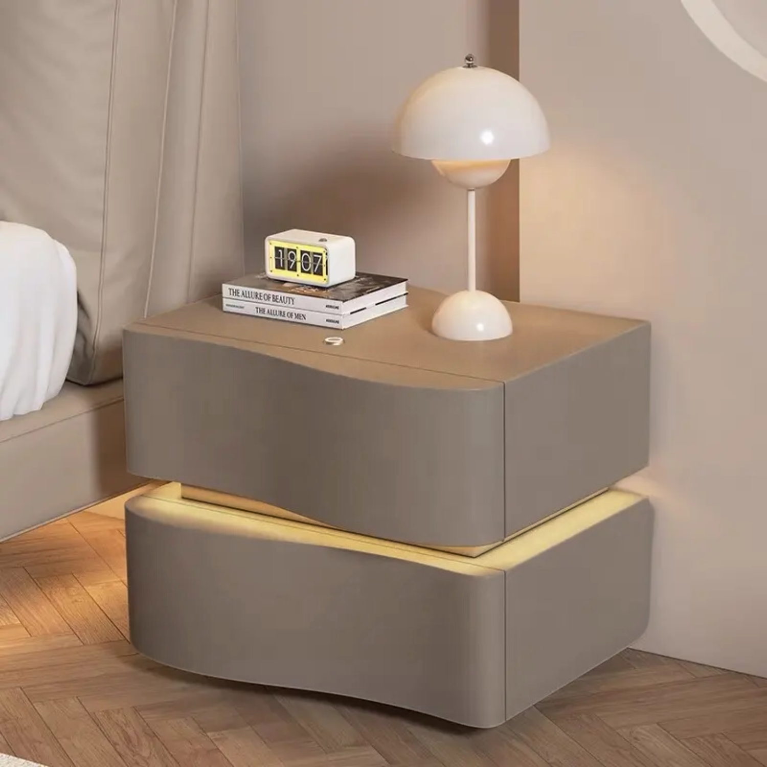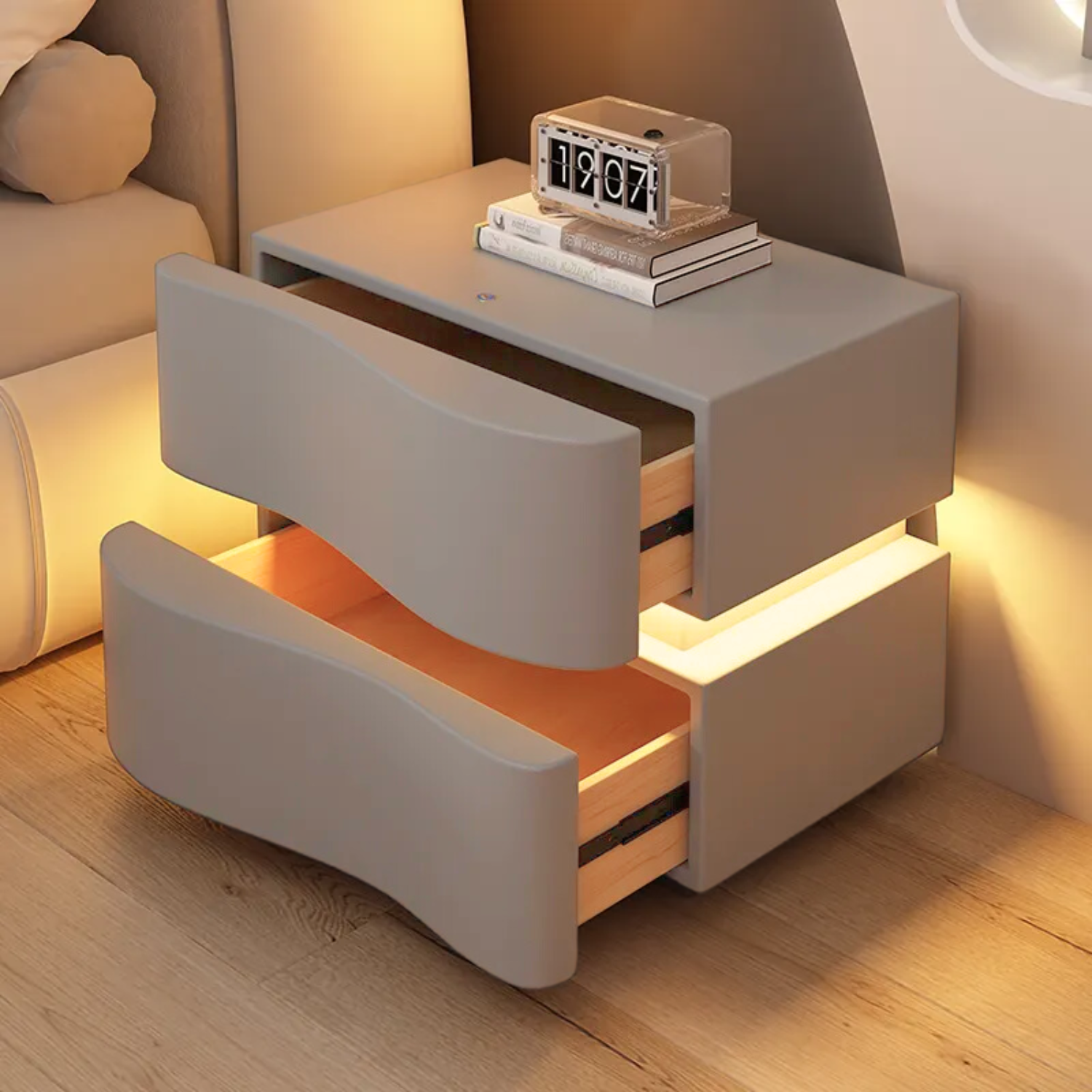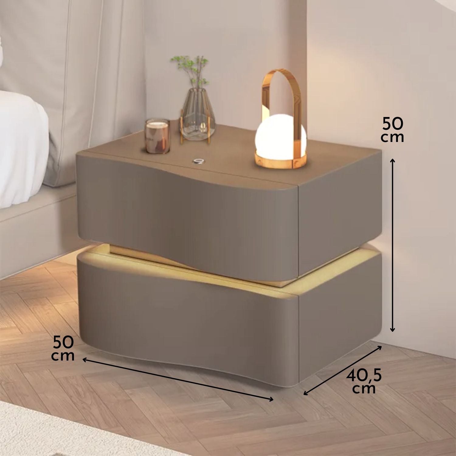 Ilumina tu dormitorio y mantén tus artículos a la mano con este Velador de Doble Cajón con Luz LED. Pensado para complementar tu habitación, escritorio o incluso sala de estar. Este novedoso mueble de líneas curvas cuenta con luz LED integrada, de fácil uso, gracias a su encendido OneTouch. Sus gabinetes cuentan con rieles que otorgan suavidad a la abertura y cierre de los cajones, fomentando el silencio nocturno. Sus patas escondidas evitan golpes y entregan la sensación de que el velador estuviese en suspensión en el aire, completando su diseño moderno.