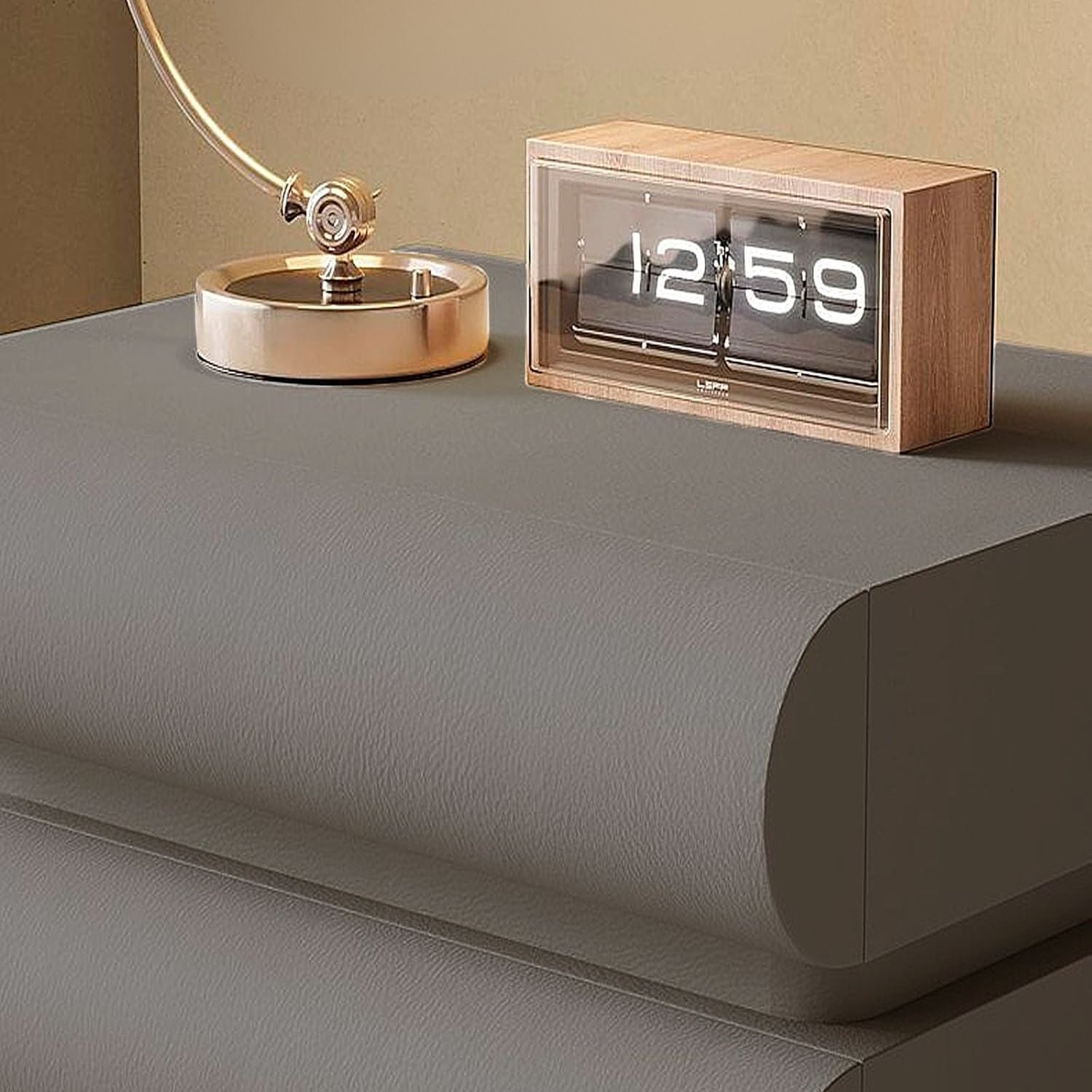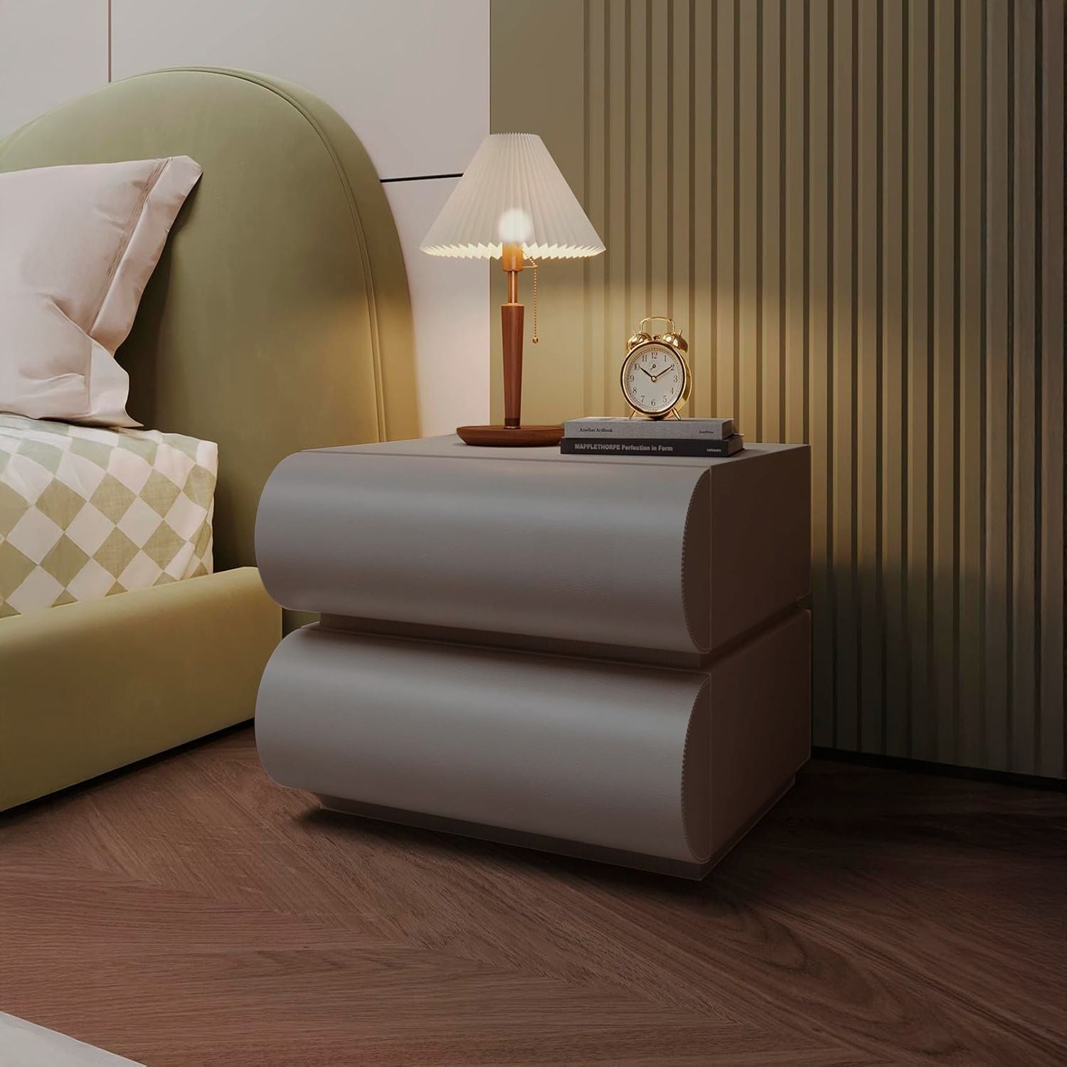 Velador Minimalista Gris Claro Doble Cajon